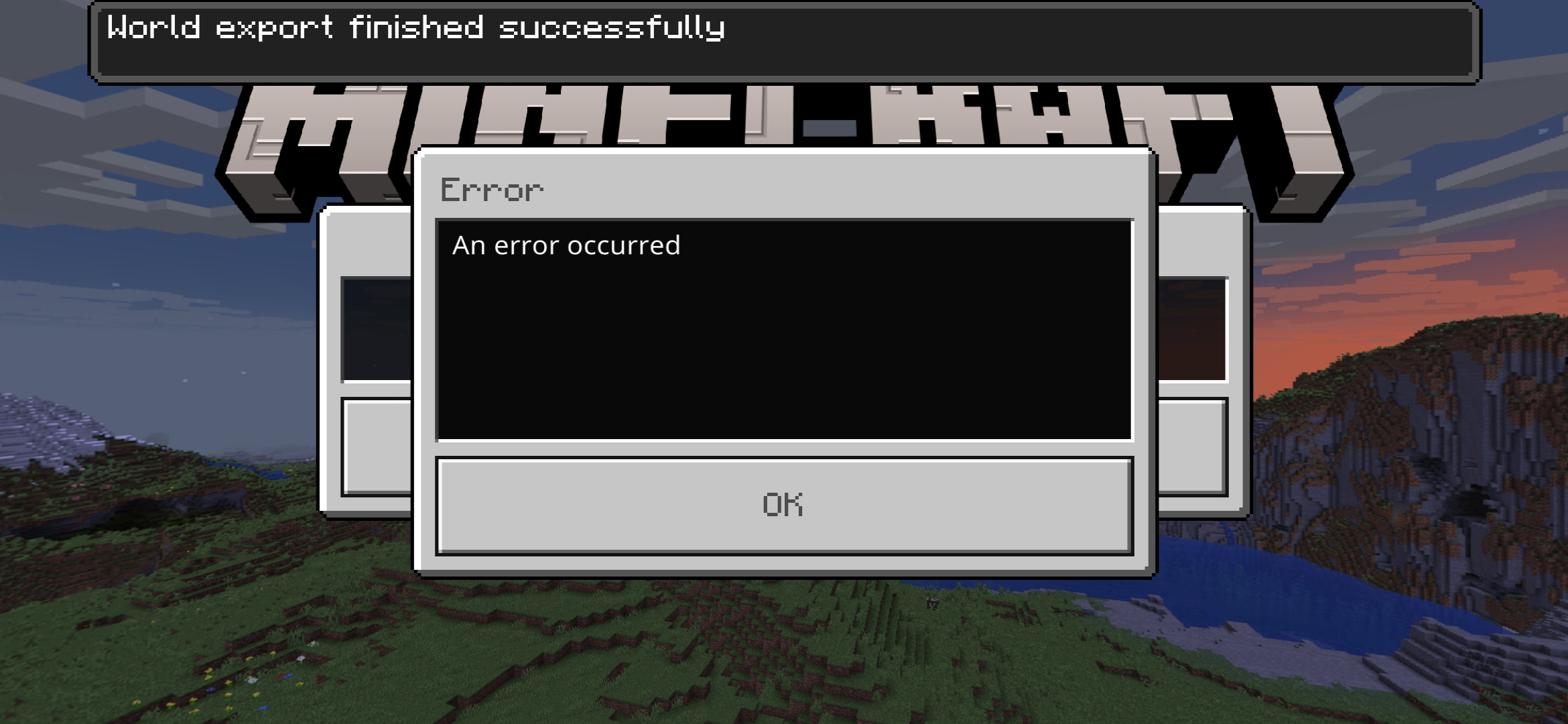 I tried as many as could to just upload my survival world on my Realm , and my world is only 5mb , I was thinking that I have problems in my connection but sadly no, Each time I tried to Upload a world on my Realm, I faced the same problem, after The Exporting end and everything is fine, an Note Pop up says : An Error occurred, I shutdown my game many time and my internet, but the same problem happen, I take about to 12/24 hours only trying to do this upload and in the end I got the same annoying Note Pop : An Error occurred.