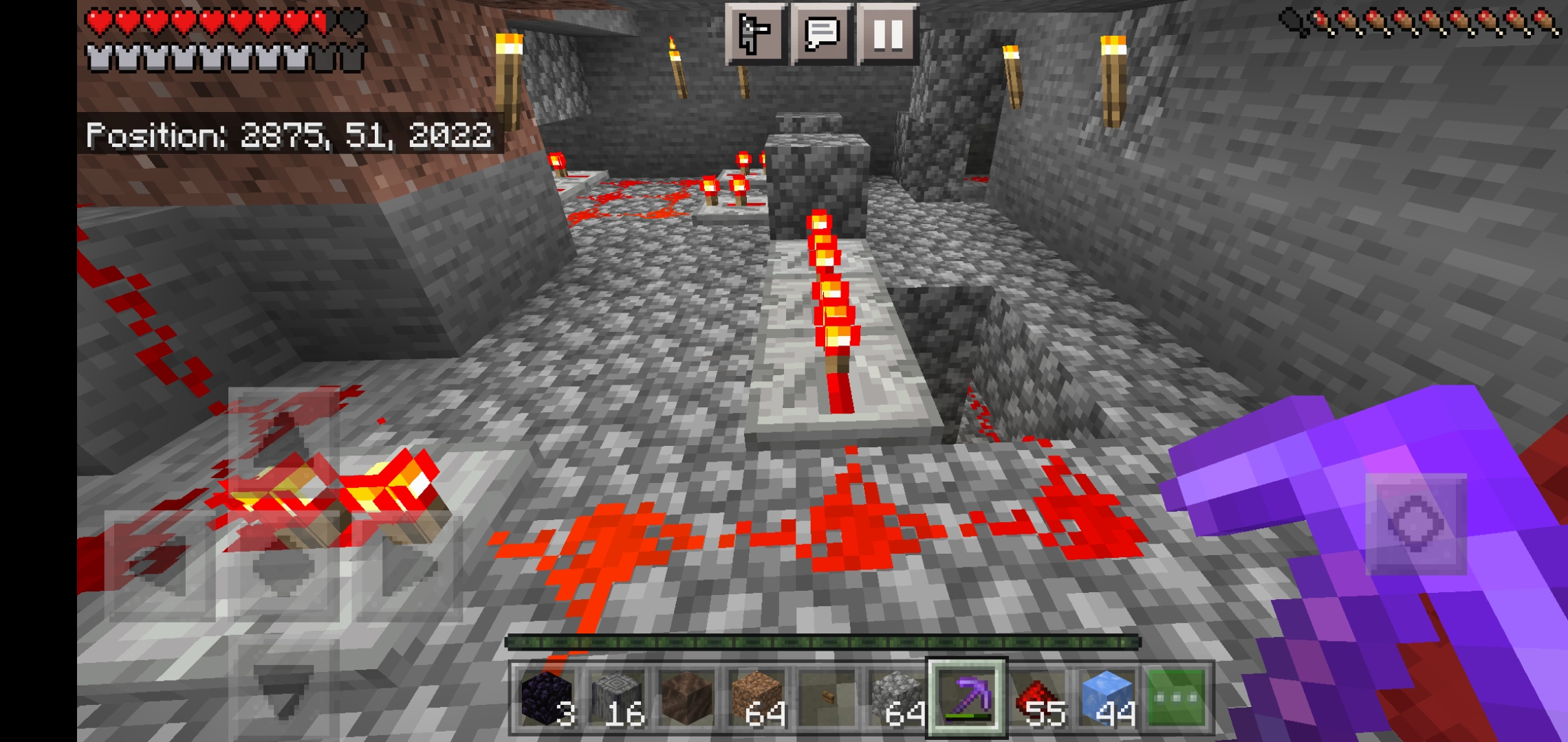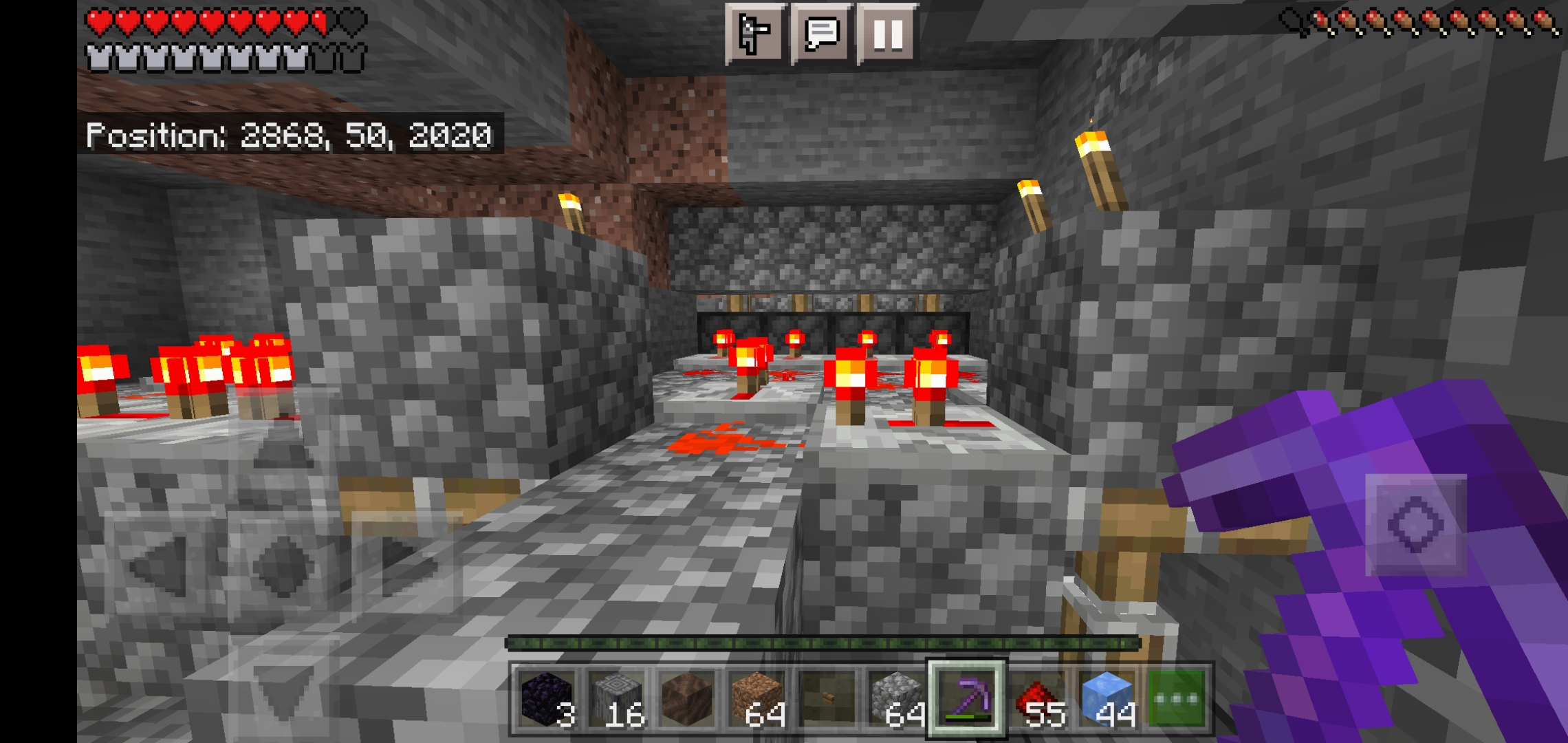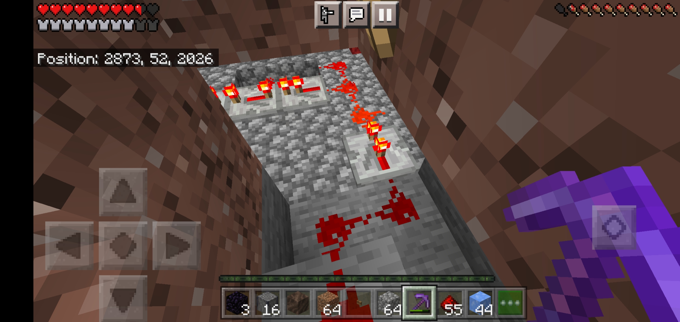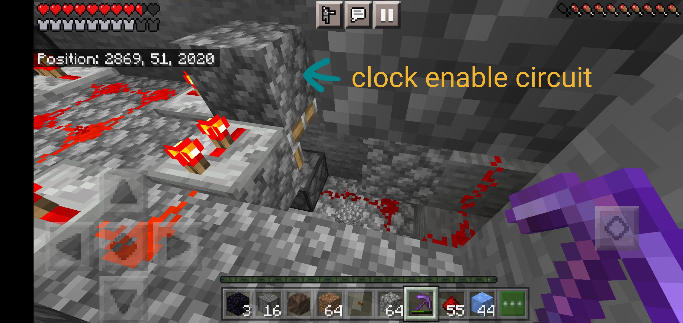 Redstone clock and pistons. If I am at y= 51 and push a button connected to the clock