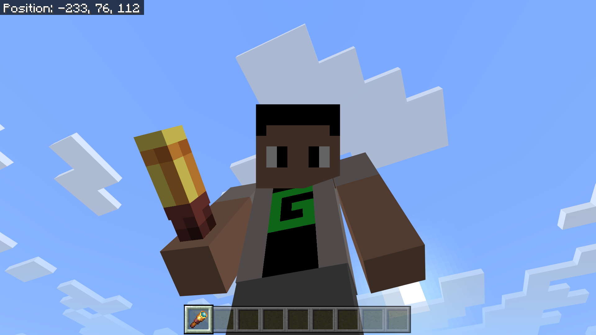In Minecraft Bedrock edition, the spyglass is not correctly positioned in the character's hand.