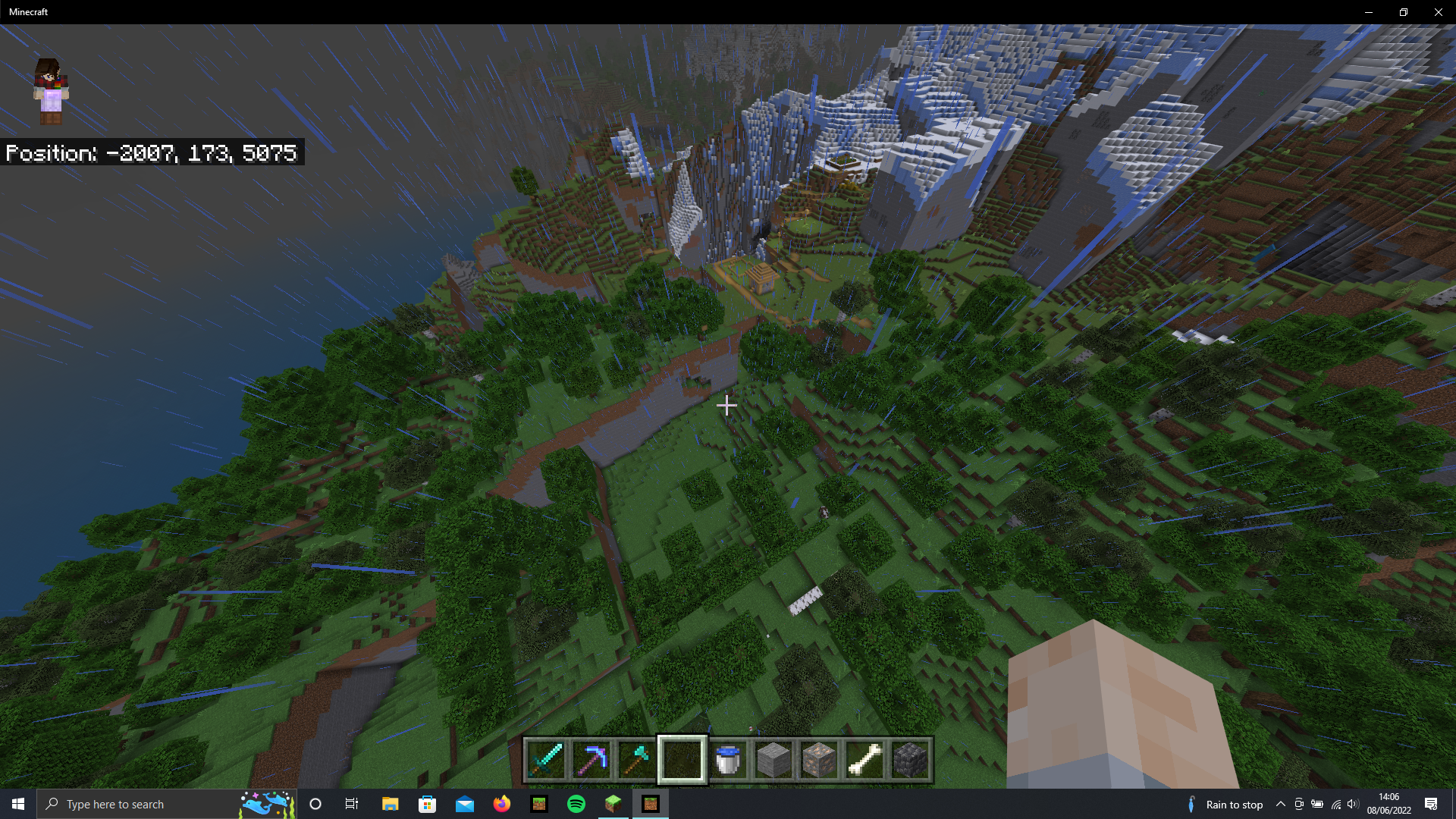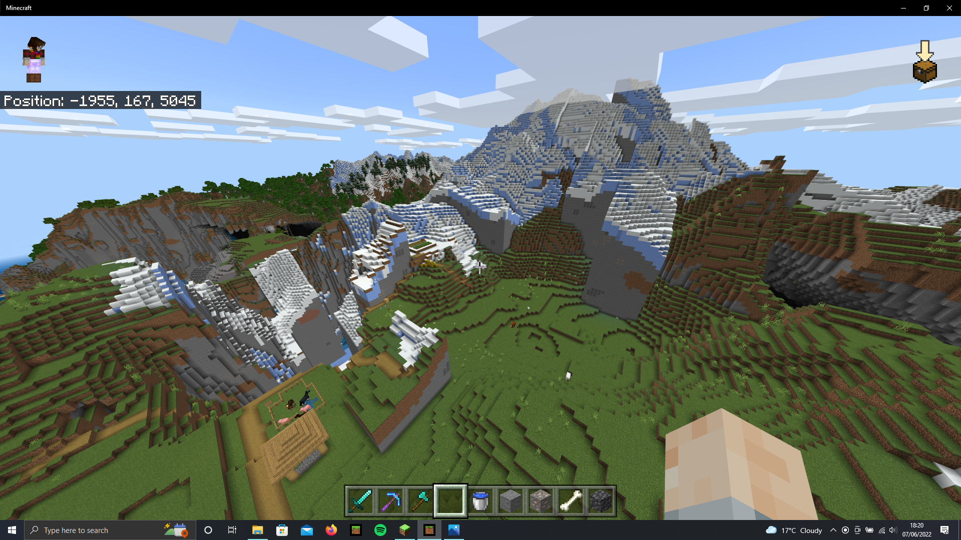 Relog or teleport away and back to reload the chunks - a bunch of chunks in the mountains will have changed.