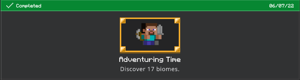 Today is the first time i played bedrock version. I created a first world, did nothing and deleted it straight away, created a new one and played in it for 2 hours, i did cross a couple of biomes and noticed in notifications that i completed an "Adventuring time" achievement which i couldn't possibly get.