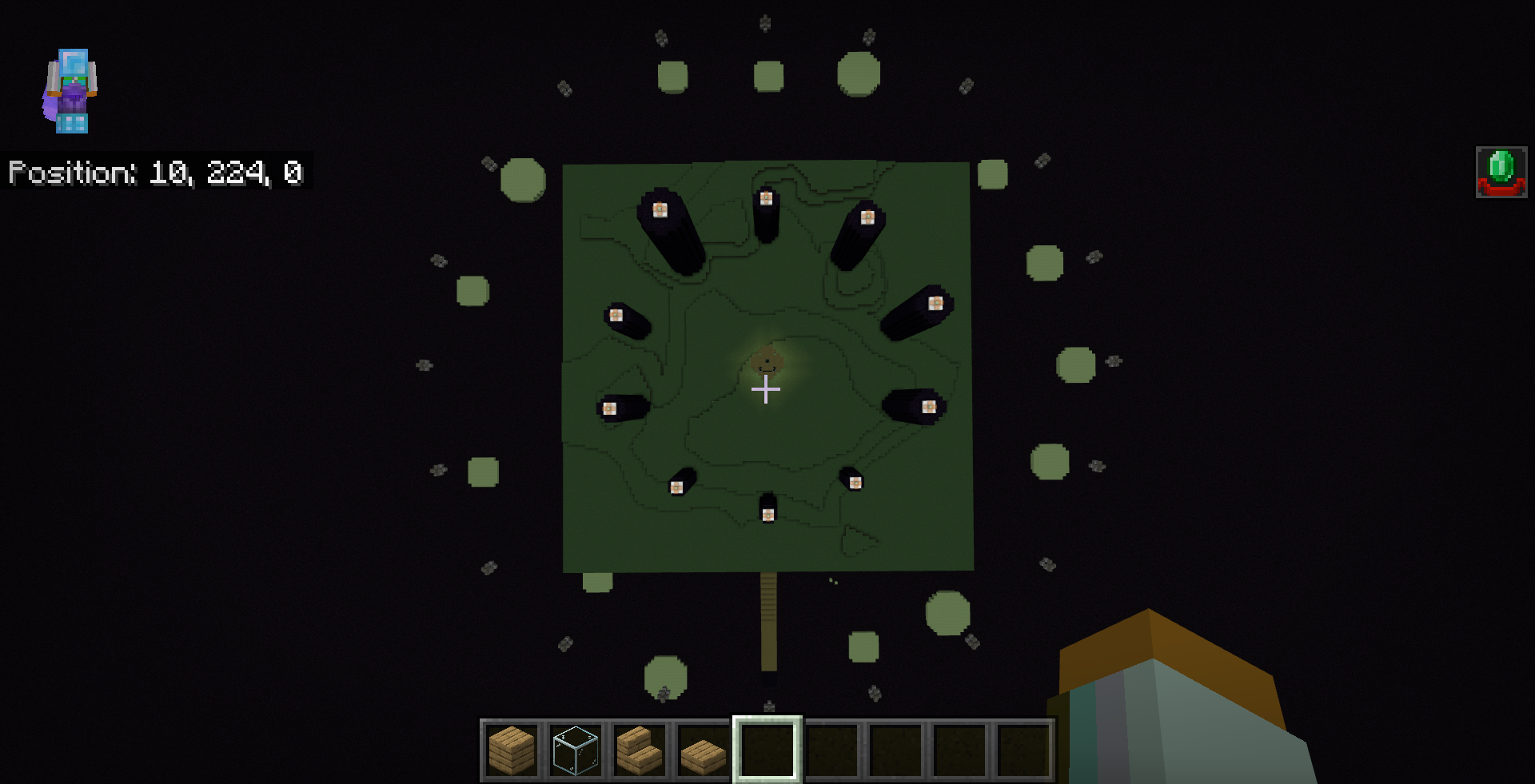 In my Minecraft Bedrock World, I had an idea for a cool project of making the end look more like the overworld by adding grass, dirt, and buildings.