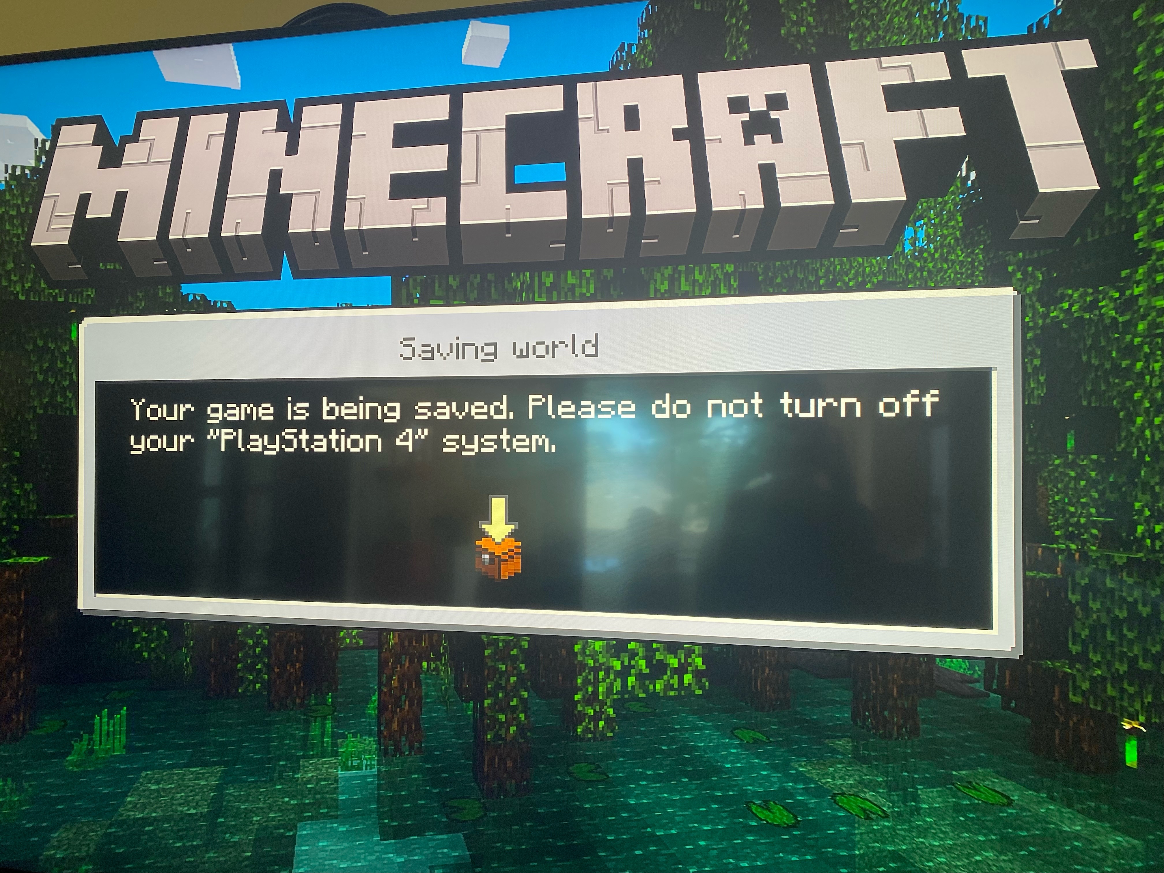 When "save and exiting" our original Minecraft world of over 2 years, the game never finishes its saving process and is stuck spinning around in the loading screen.