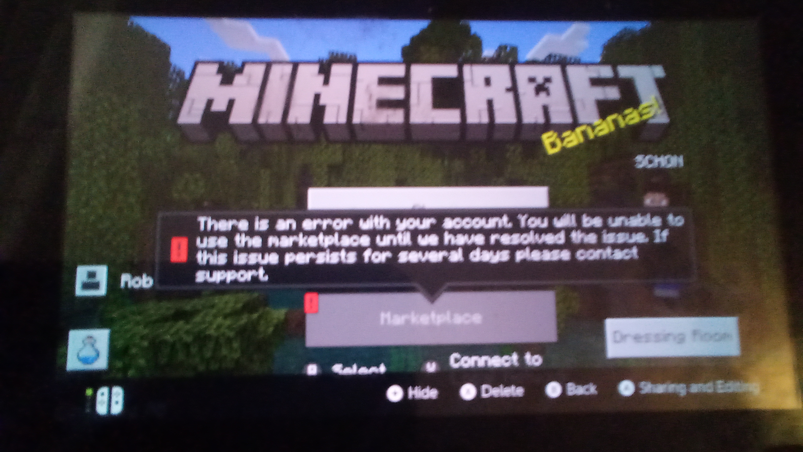 The marketplace just won't work on Nintendo switch. There is always some glitch that happens like it taking very long to load, the group names are the technical ones, and the marketplace not being accessible at all.
