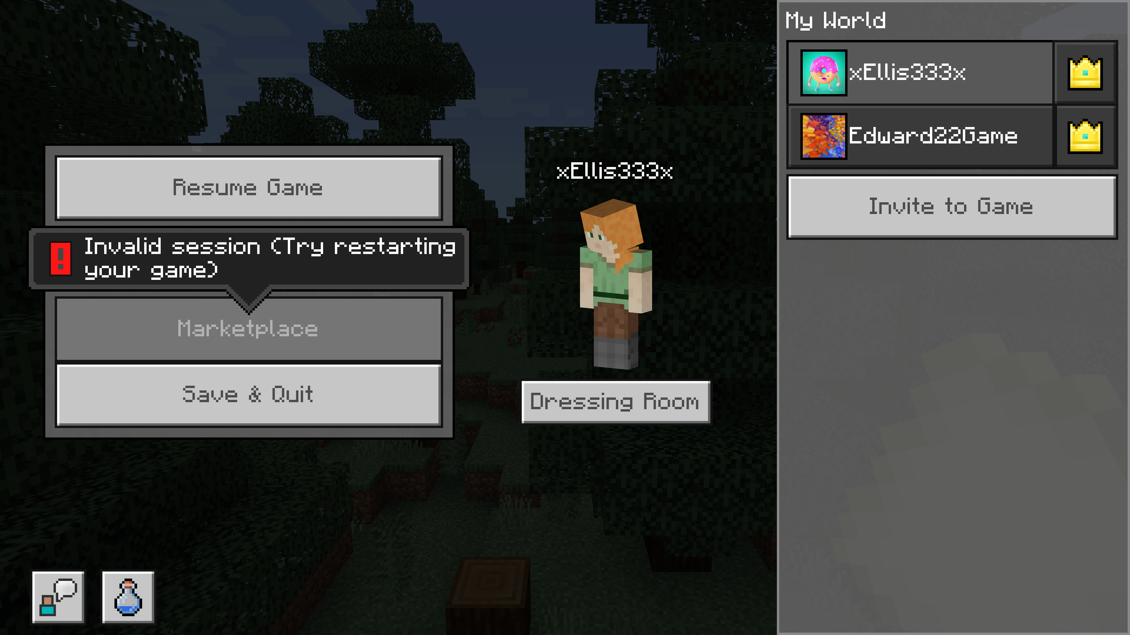 I cannot access marketplace or use any commands when joining someone else's world on Bedrock. I keep getting the error "invalid session (try restarting your game)" message.
