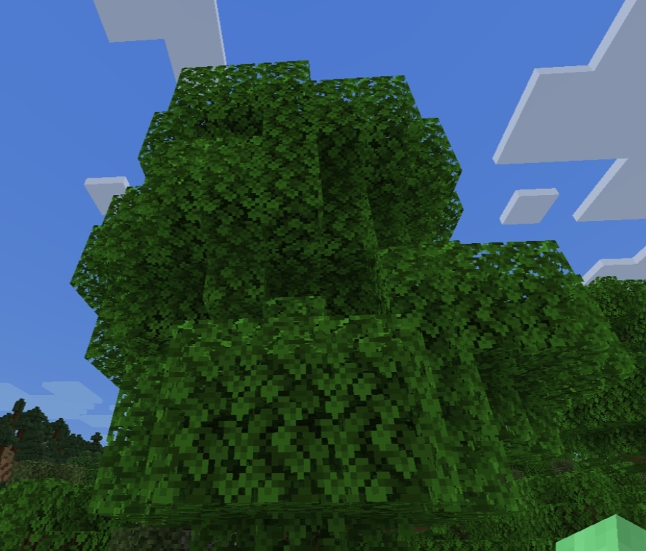 All large oak trees in minecraft bedrock edition look like lumps of leaves in a group (as shown in the image) there should be longer branches and less grouped together