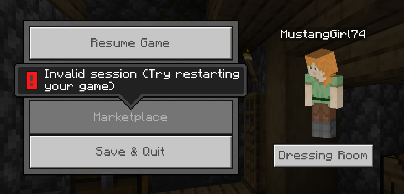 Custom skin will not load since 1,18 and still will not load with the 1.19 release. Cannot access the skin creator to even use a Marketplace skin. None of the buttons on the side or the "create skin" button are clickable for me. I can't access Marketplace at all from the home screen or while in game. When you hover over the "marketplace" button while in game I get "invalid session" and try restarting the game.