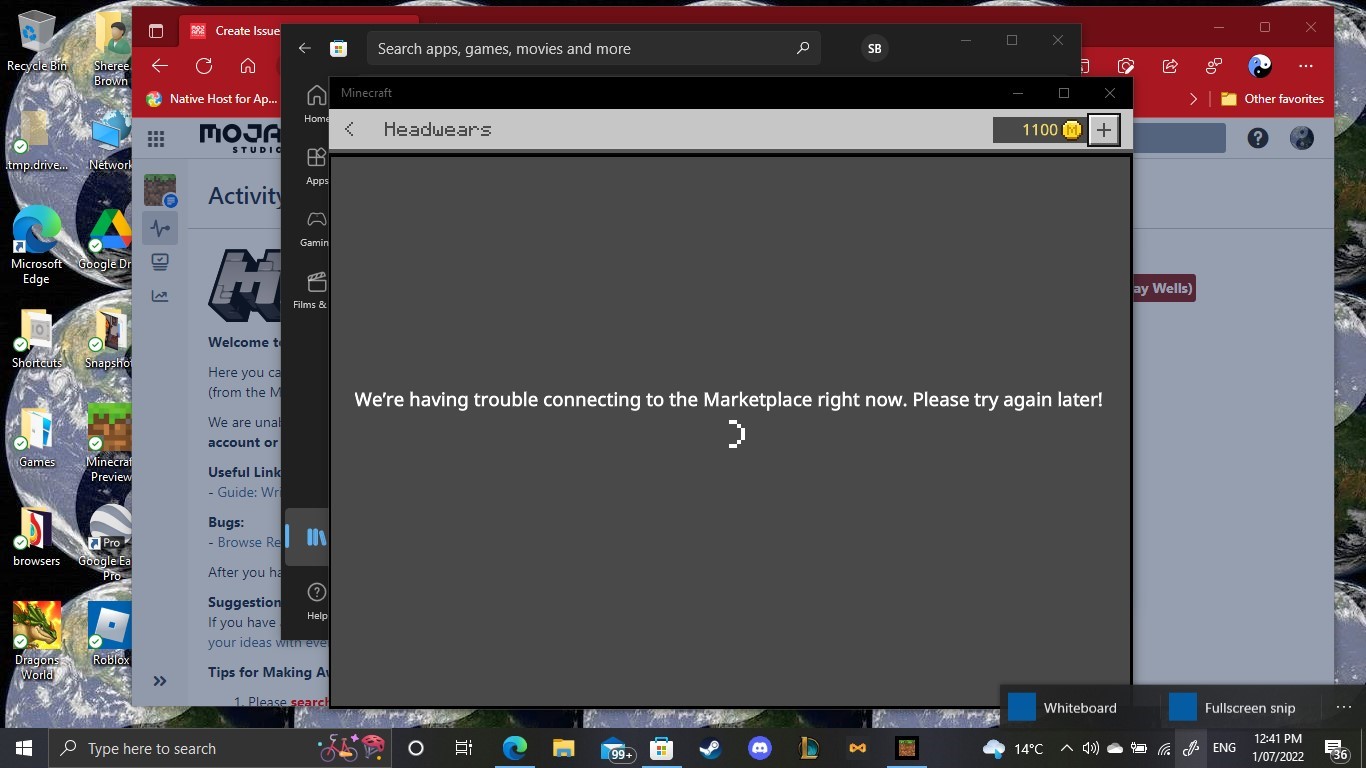something went wrong with Marketplace Minecraft bedrock edition or for Windows 10 not connecting try again