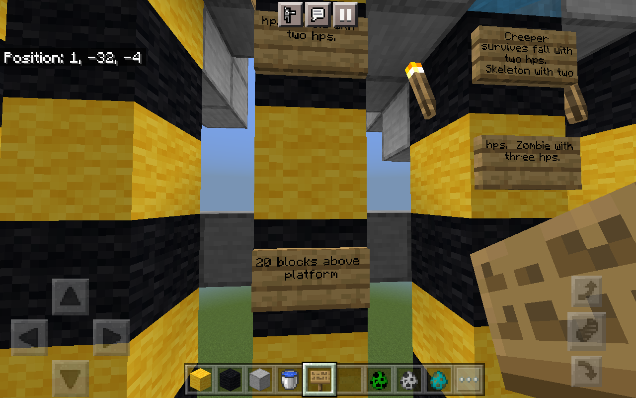 That being the case, the only inconsistencies here relate to the fall distance and method of causing the fall. Here are my results for skeletons and creepers: