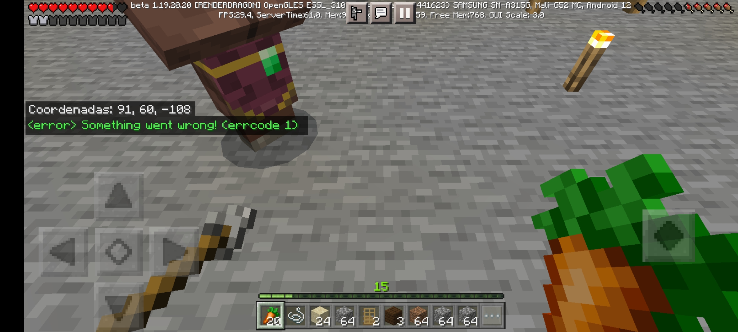 when I entered my world everything was normal I have a village where the villagers are locked up and I have a rail line connected to my house the case is that error code 1 appeared and the cart disappeared, I walked to the base that is almost close and it was Everything normal, I did not leave the village when after 5-10 minutes I get the error "errocode 1" again and all the villagers disappeared