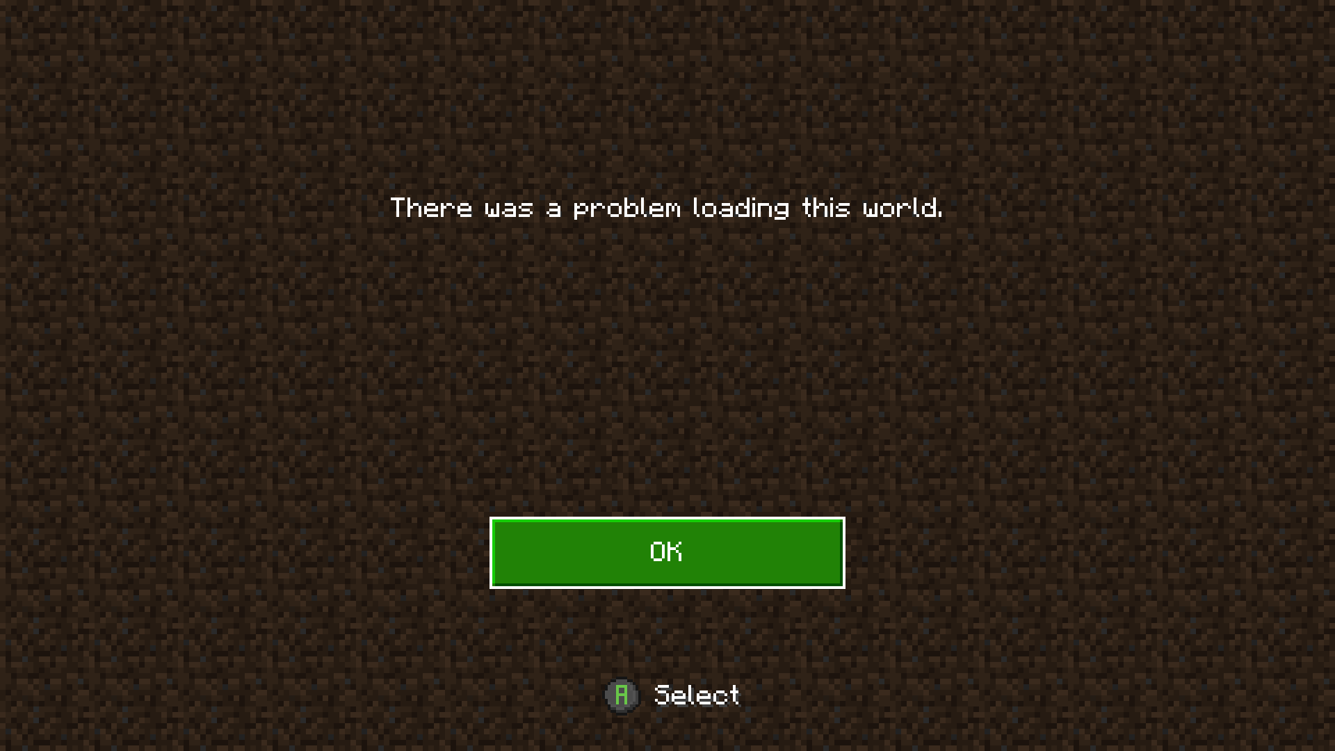 So I was playing my Minecraft world then I log out to get off my Xbox and when I got back onto the Minecraft and I tried to load into my world all it said was "There was a problem loading into this world." So I uninstalled Minecraft and reinstall it but that didn't work and I restarted my Xbox and that didn't work.