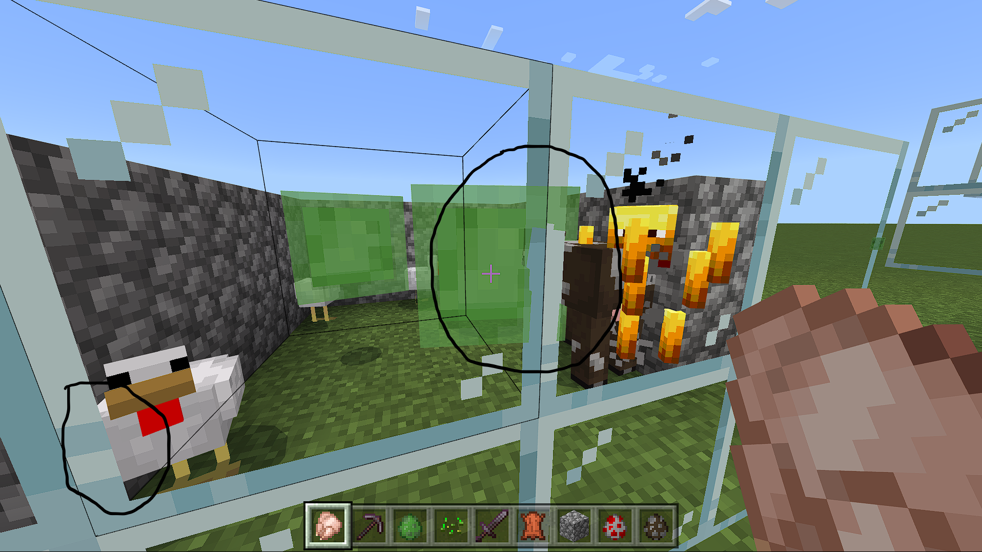 When I looked through the glass of my flat world, I noticed the slimes through the white edge of the glass. I tested it with a couple other mobs and it only happened with the slimes.