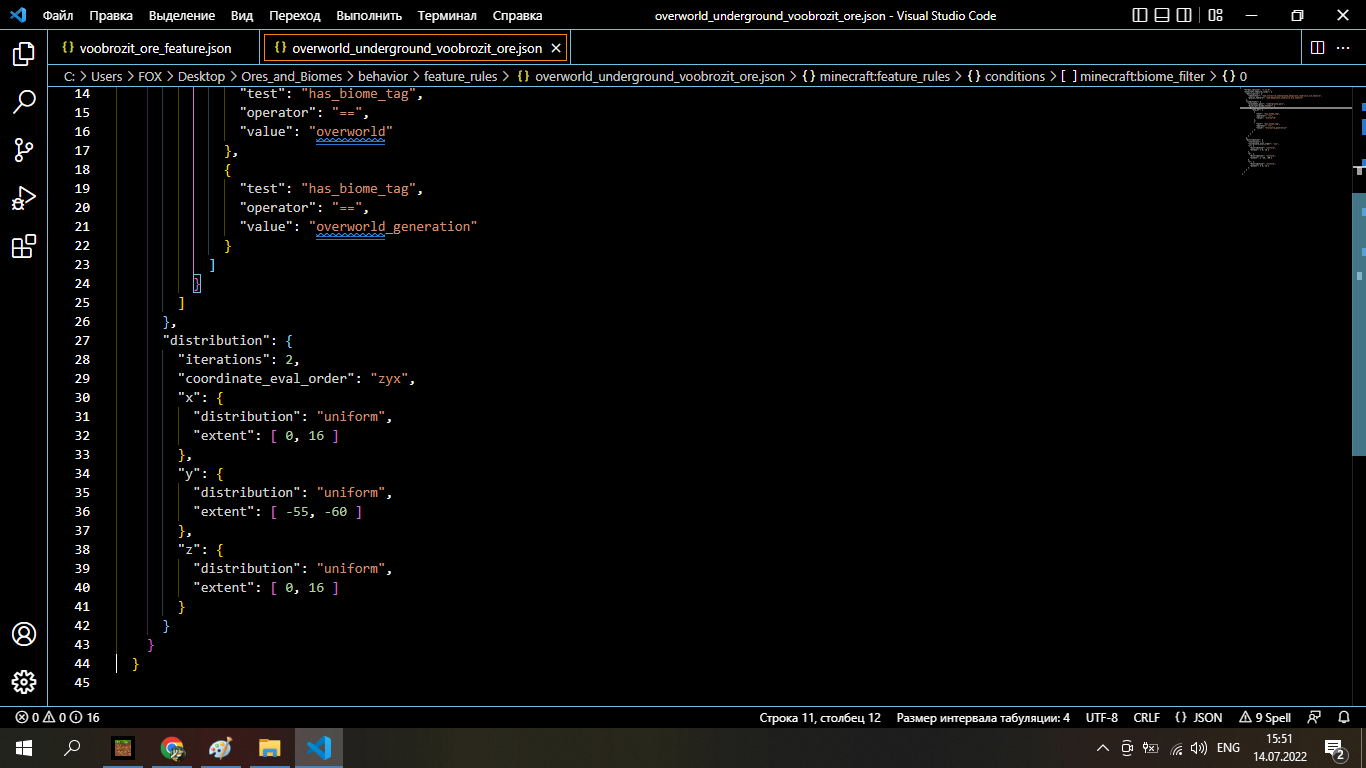 I will attach a screenshot from the minecraft world and two screenshots from the code where it shows that the generation is below that height! and she's gone!