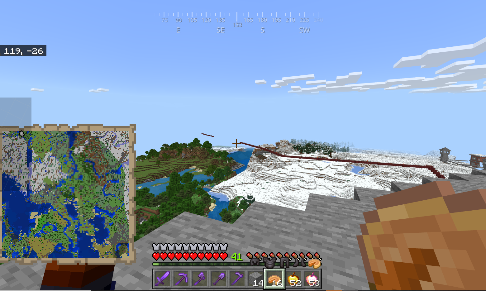 I am Very condused, I updated my game to the newest version (1.19.10) and continued playing normaly, I did notice that part of my railway to a pillager outpost were gone while I was building my massive Floating Island, I came closer to inspect why parts of these rails were gone, I then noticed that a massive part of the snowbiome was gone in a strait line and replaced with an ocean biome. In the Extrem Chunk Border Png one can see that the biome was a snowbiome( see the map my character is holding) until I updated to 1.19.10 this wasn't there. Now there is a Giant 2-3 Chunk wide ocean in my snow biome, This isn't a huge problem since I build nothing there execept that part of the railway, but I am still so confused how this even happened. The world I am playing in is active since minecraft 1.16.0, 1.16.1 or 1.16.2, I don't remember in which of these versions I created the world but it is almost 2-3 years old. Maybe the world is too old, but I never had real big chuck border Issues like this one up until 1.19.10 , I had some small ones like a small hill being cut of a little bit, but nothing huge like this.