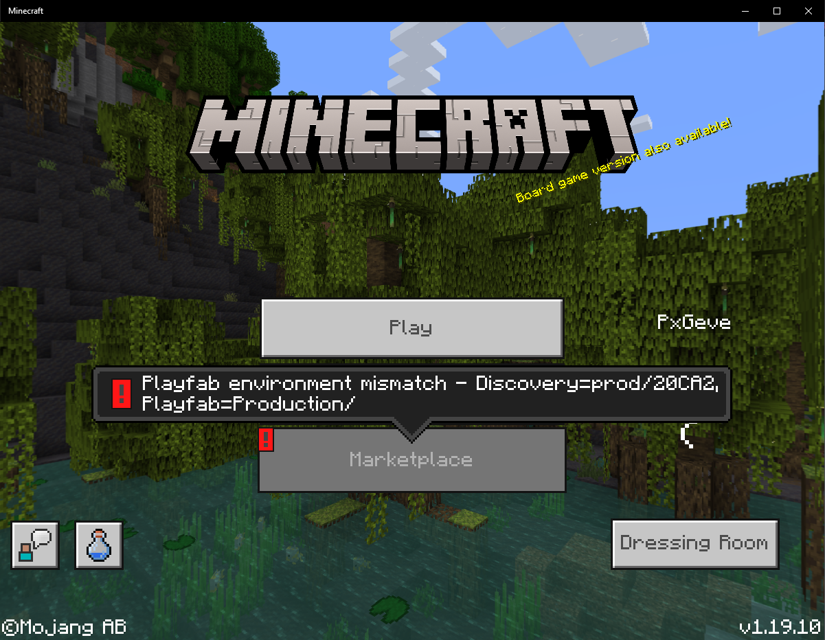 It says "Playfab environment mismatch - Discovery=prod/20CA2, Playfab=Production/". I've tried uninstalling, restarting, and signing in and out.