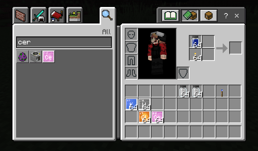 Taking the resulting Cerium Chlorine, open the crafting screen after obtaining a torch. Place the Cerium Chlorine above the torch in the crafting screen as shown in the first screenshot.