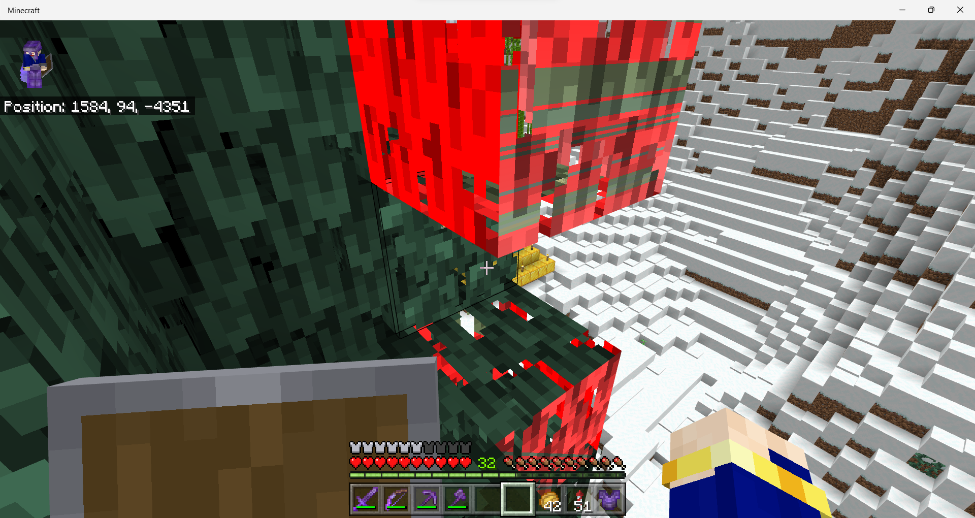 Edit: I've done some testing and this seems to go away when it begins to rain (or maybe just snow, since this happened in a snow biome). I also took away the resource pack and transported the world to single-player, but the problem still persists, implying that this is neither a server problem, or resource pack problem.