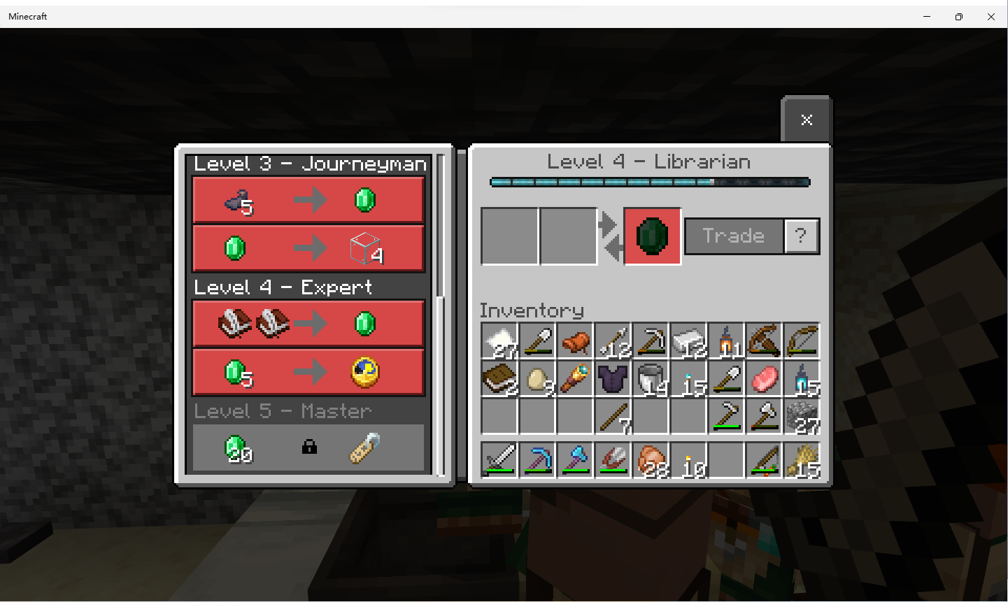 The librarian displays a functioning clock and compass.That way, players can see what time is it or in which direction the spawn is without having any emerald.