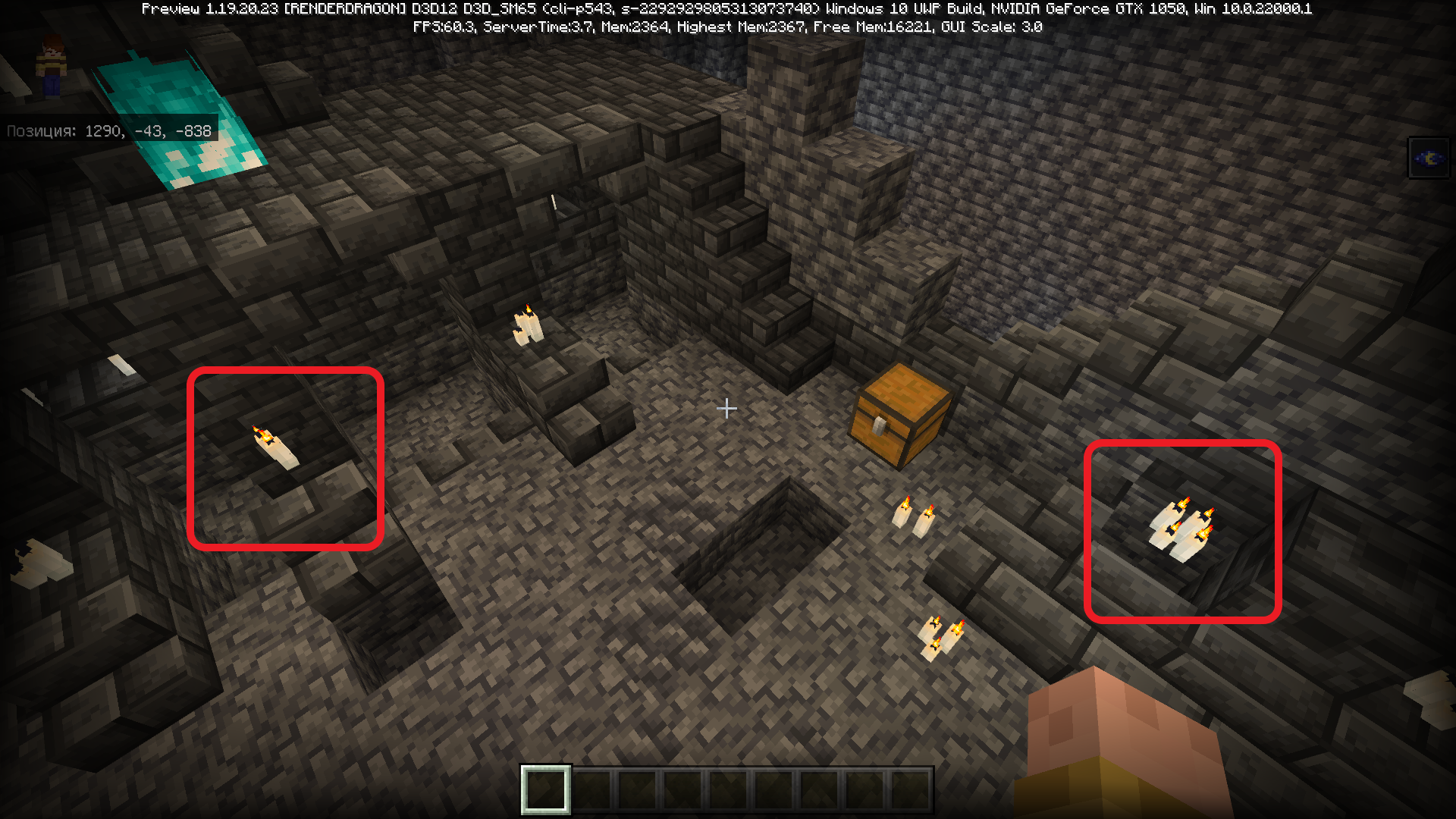 Candles and lanterns can generate in air in Ancient City due to missing blocks. It seems that this only happens in barracks.