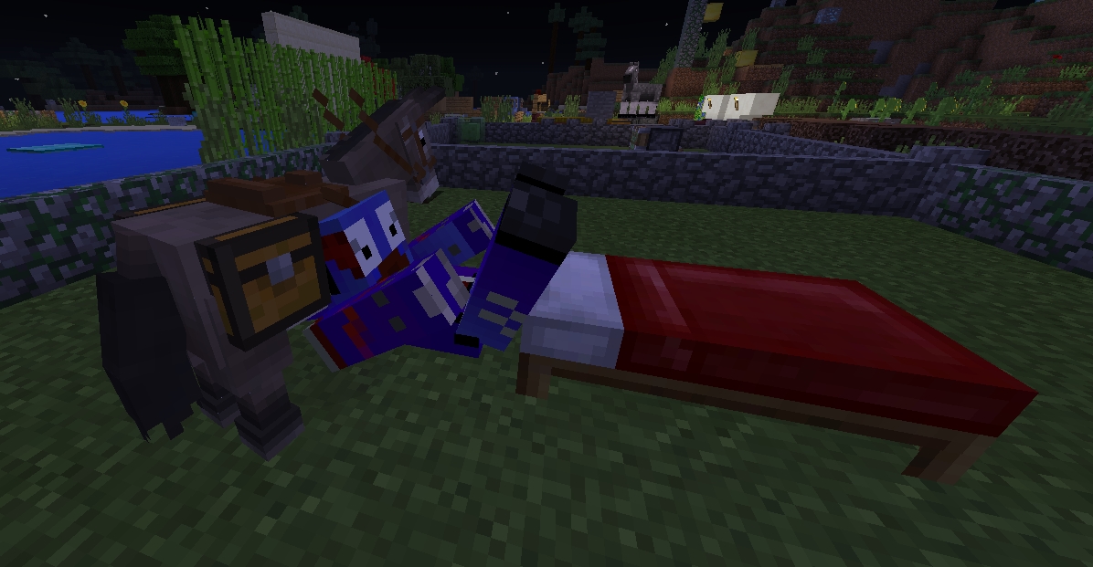 When riding a mount or vehicle, I was expecting to dismount when I tapped on a bed to sleep at night. Instead, it causes the player to float (hilariously) in various positions (see images).
