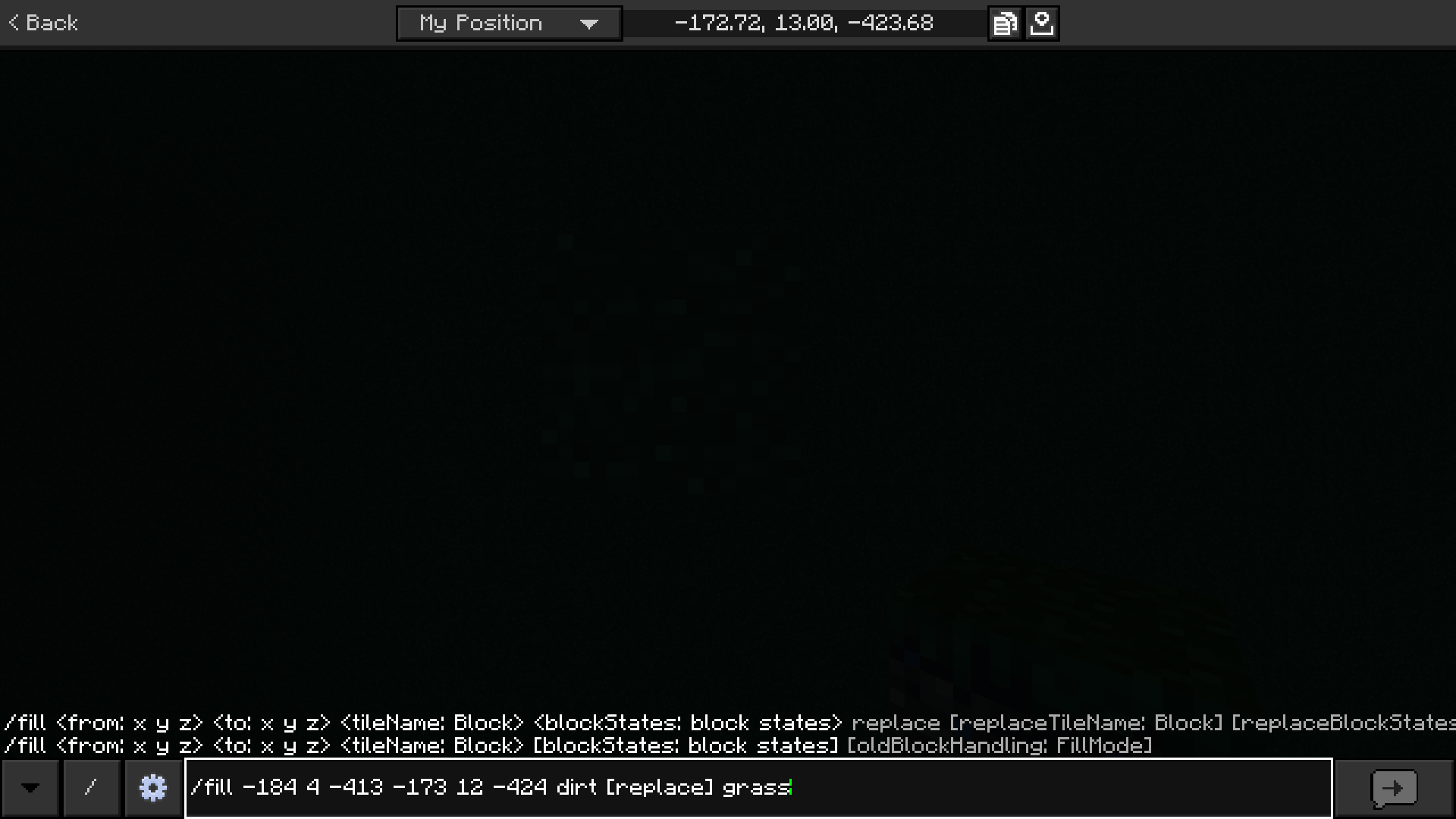 /fill < x y x > < x y z > <block> replace <block> will result in a syntax error. After typing replace nothing shows up either on the left. Also now you have to put square brackets in front and after replace for some reason.