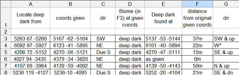 I am pleased to say that if you are looking for Deep Dark with an Ancient City, you are in luck. That can be located spot on as long as you know the right y coordinate to look at. Thus a good work-around is to "locate" an ancient city rather than just deep dark. It's probably the city you really want anyway.