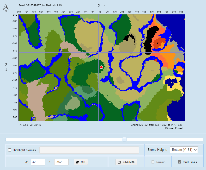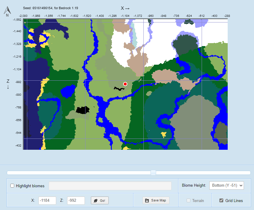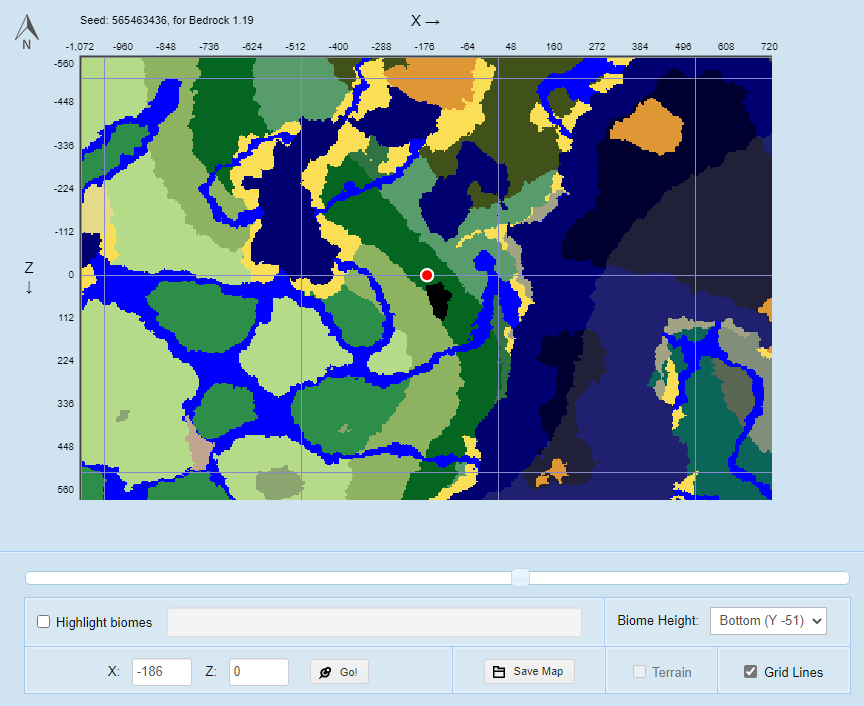 JE coordinates: 536 -36 -522Seed #1 map and corresponding coordinate: