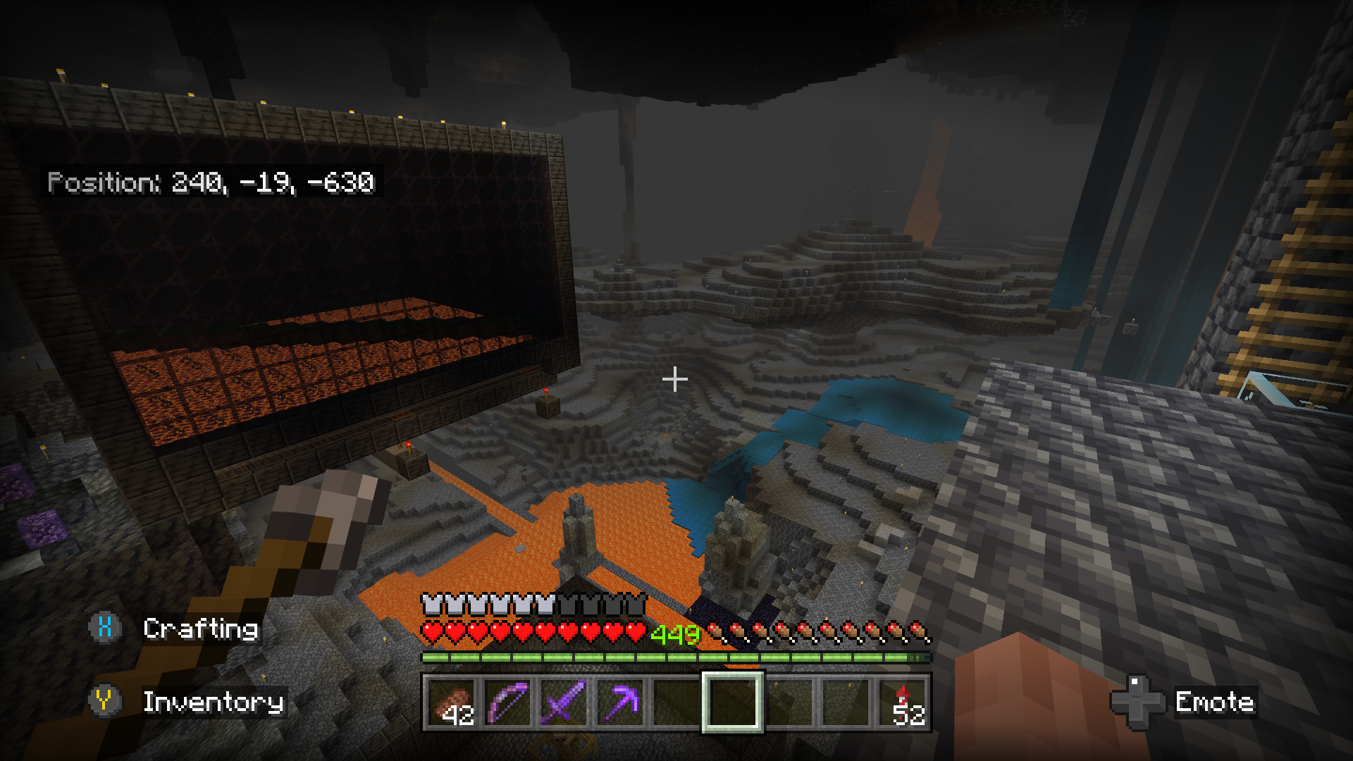 in the screen shots you can see I’ve experimented adding stone blocks above the magma to see if that works. Also you can see the closest water on the floor of the cave. The squid will happily spawn in that when you are closer. It’s out with sim distance on this shot.