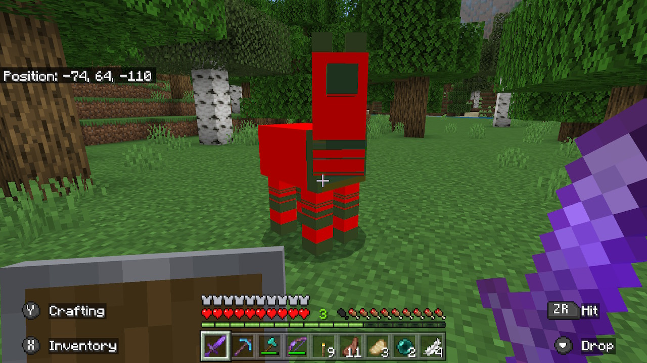 I'm also having the same issues as the red/green llamas as well as the black horses. Lately the llamas have been the beige/brown blocks but without actual textures or features. Also on Nintendo Switch and have re-downloaded the game as well.