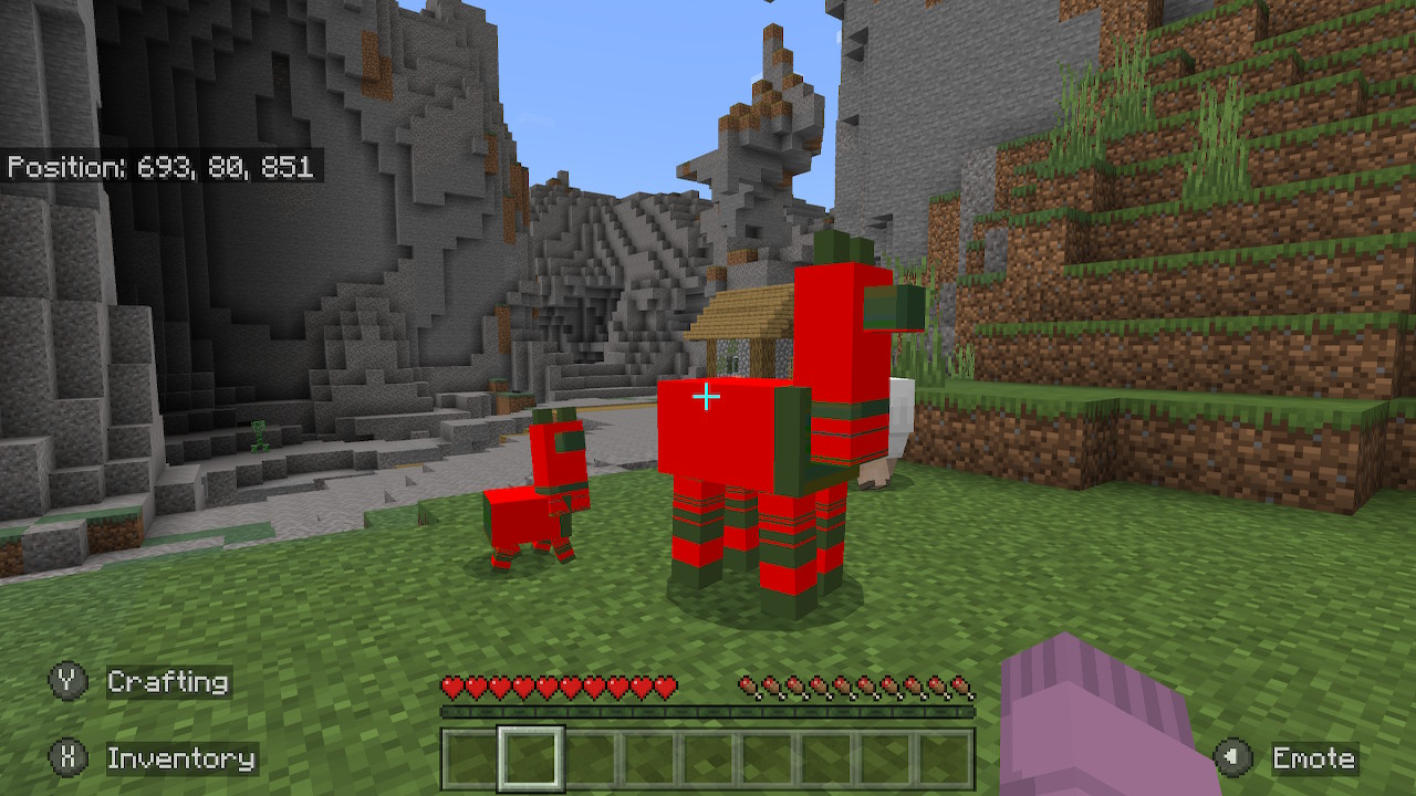 The skin/texture on llamas are entirely red and green. The llamas I encountered (seen in attached photo) were naturally spawned so I am unsure if the same problem occurs when the llamas are spawned in by the player.