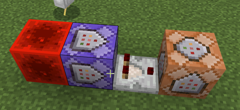 2.Give yourself a command block and a repeating command block, and place it like the figure 1, and fill command 1 in the repeating command block (as above actually); fill command 2 in the command block: