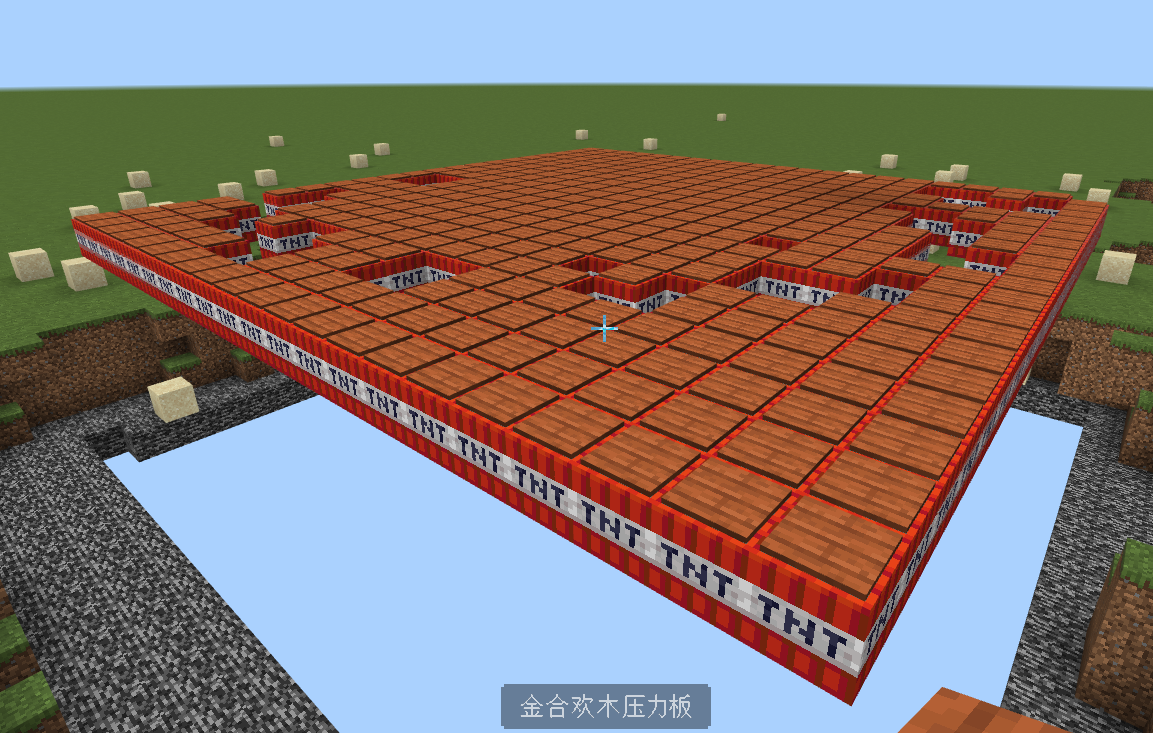 3.Launch the repeating command block by Block of Redstone and create a TNT platform like this: