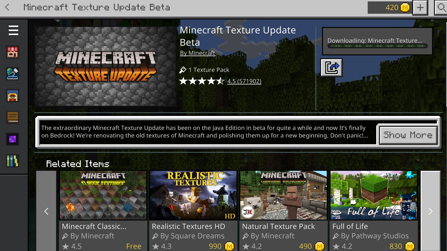 I downloaded and used some texture packs when they were included in Realms, but now that they aren't anymore I can't even buy them. It happens with all/most of the removed ones but I'm especially sad about the Mizuno Craft texture pack. Even the Minecraft Texture Update, which I think is free, doesn't work. They have been stuck in this Downloading phase for a long time now.