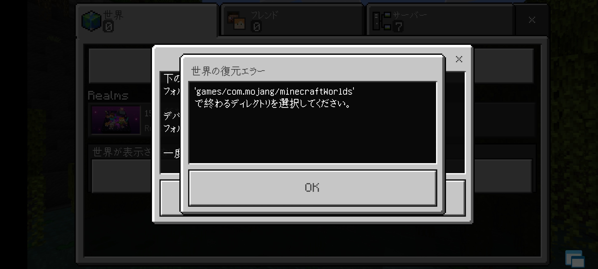 The save destination is set to external, but the world cannot be restored. (Android→data file is not displayed)