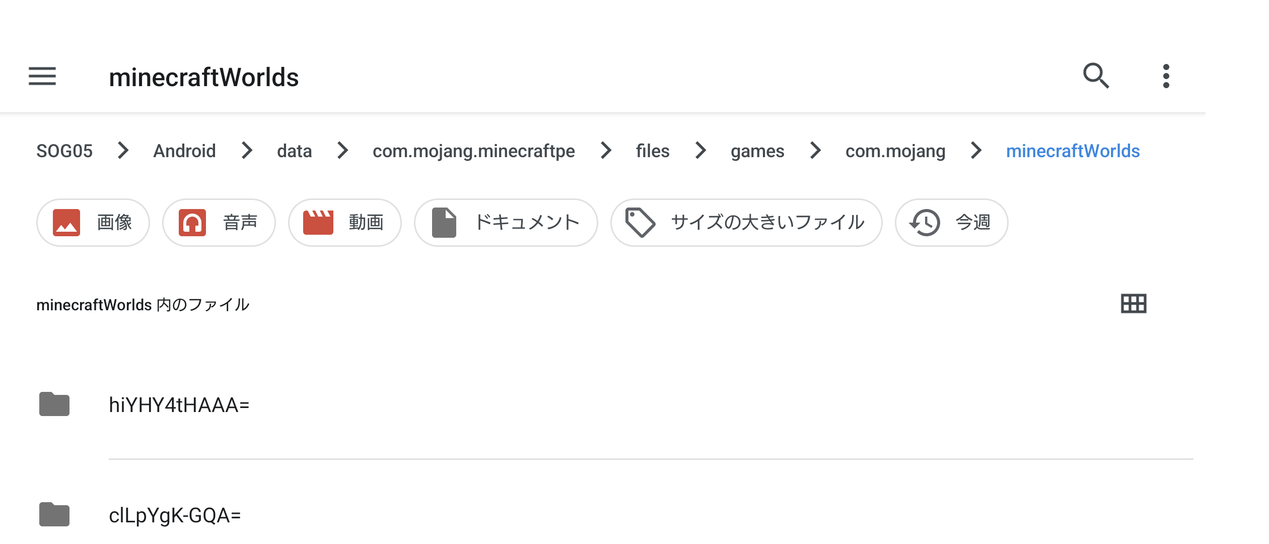 /Android/com.mojang.minecraftpe/files/games/com.mojang/minecraftWorlds ?