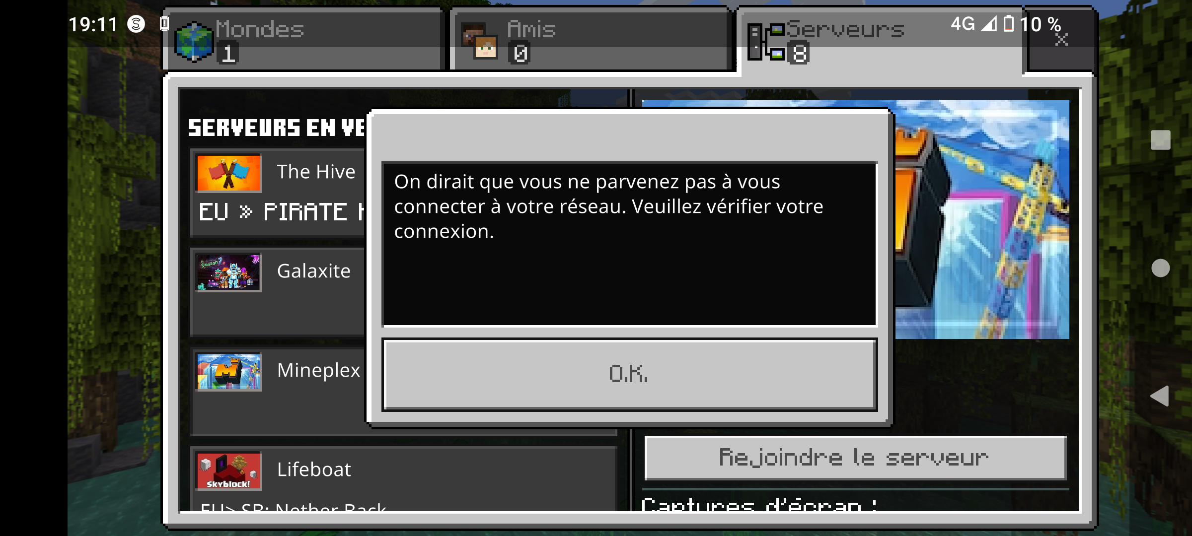 A popup prevents you from connecting to a multiplayer server if you are not connected to a WiFi network even if internet is available (mobile data).