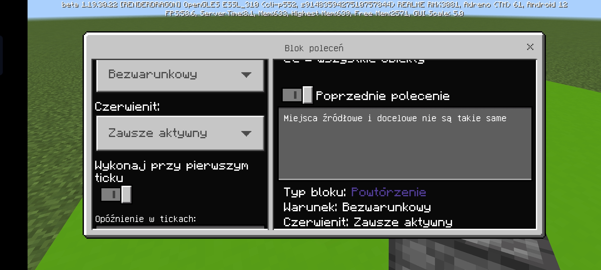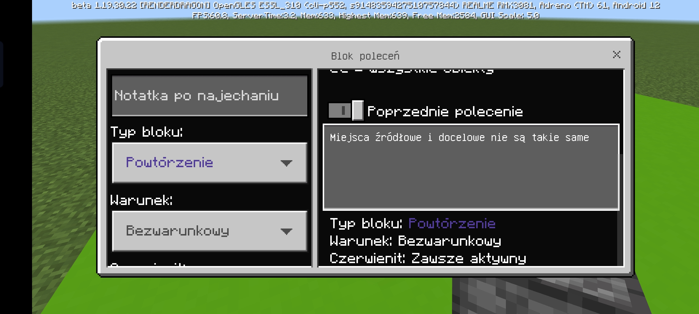 by using the command / testforblocks to check if the box with the content in the destination and the starting site are the same, the command shows that the blocks are not the same, if I remove the contents from the crates and check the empty crates, the command works normally. It is the same with all blocks that have the ability to insert something into them. feeders, dispensers,shulkerboxes, etc. (the pictures show Polish, I'm from Poland.) It's all on the net on 1.19.30.22 but I didn't have this option to choose from.