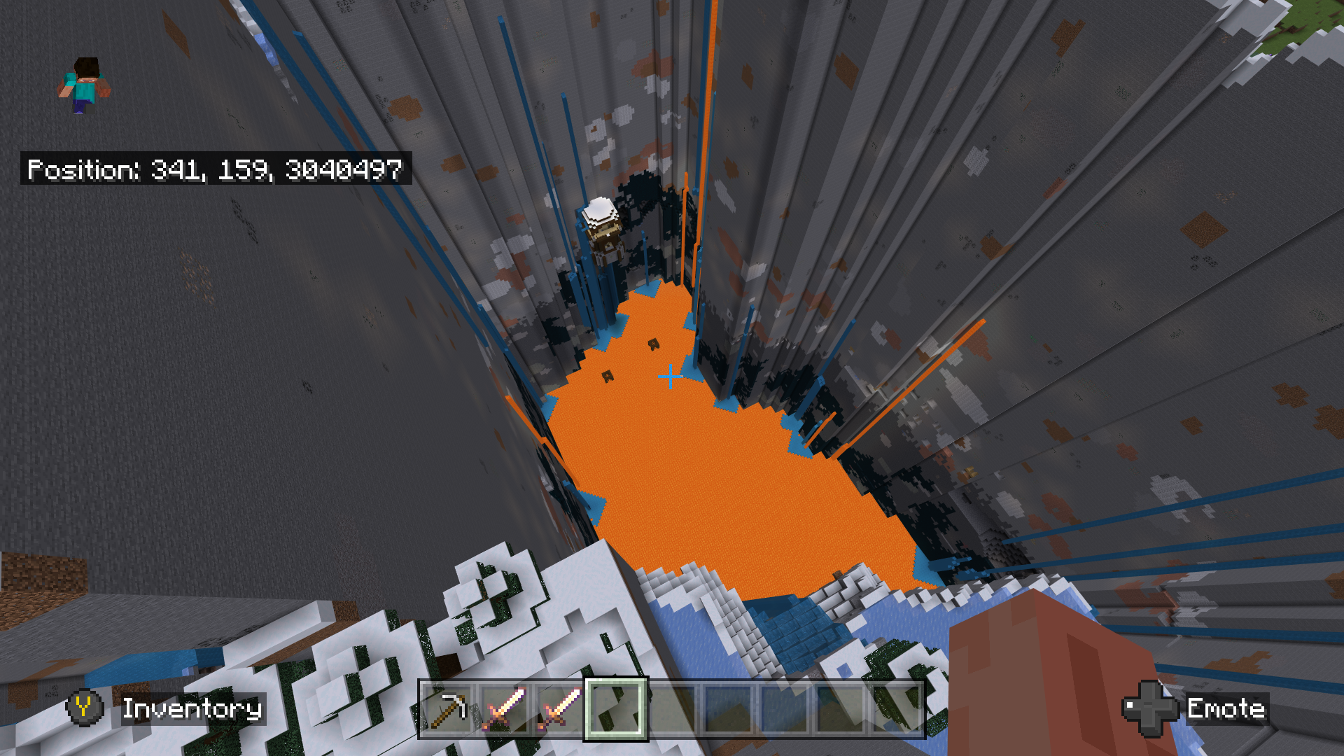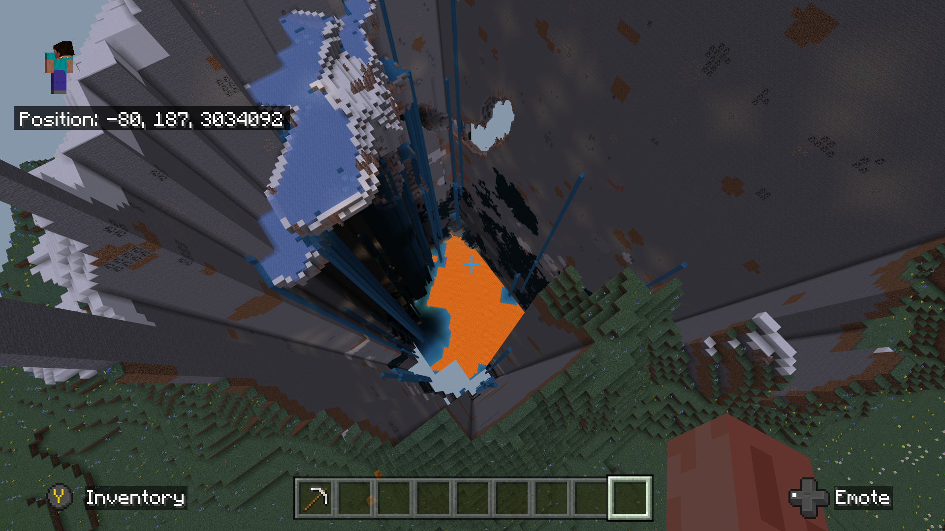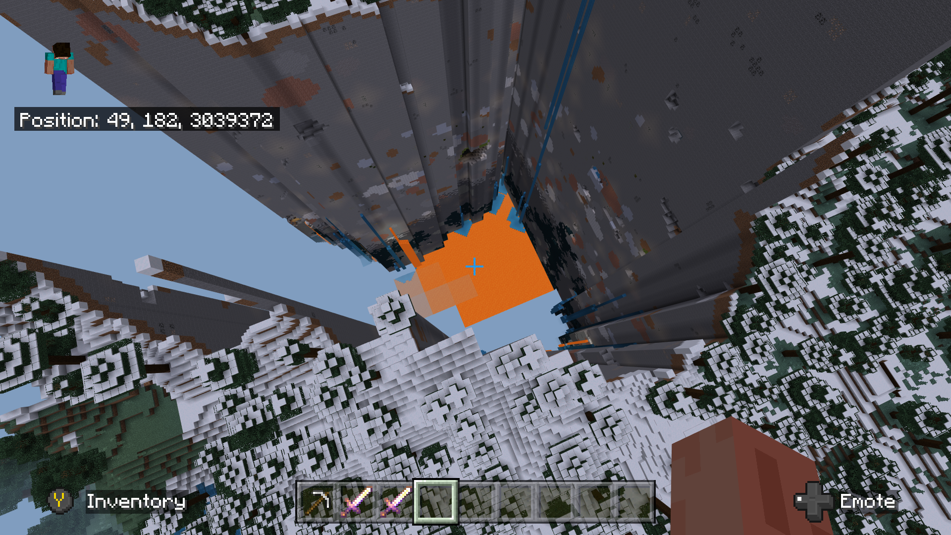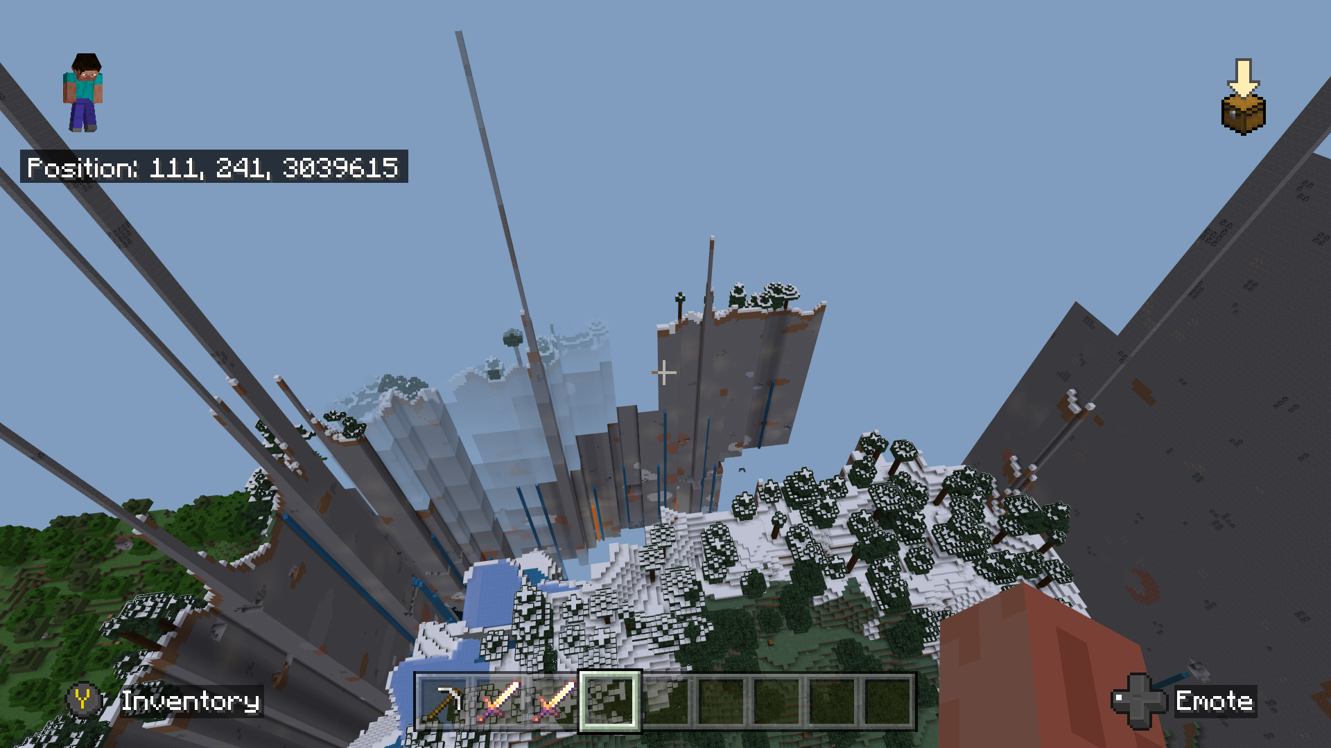 After flying 3 million blocks on the z axis, I encountered multiple problematic terrain bugging, pillars that ranged from being 2 blocks thick to 9 blocks were randomly generated up to 280 blocks high, went down to bedrock, glitched all the terrain around it, caused ice biomes to spawn inside the exposed area and the new deep dark area was seeable from the edge of the glitching, I experienced this while playing Minecraft 1.19.2101.70 on my Xbox One X. Screenshots were made with Xbox's in built screenshot tool.