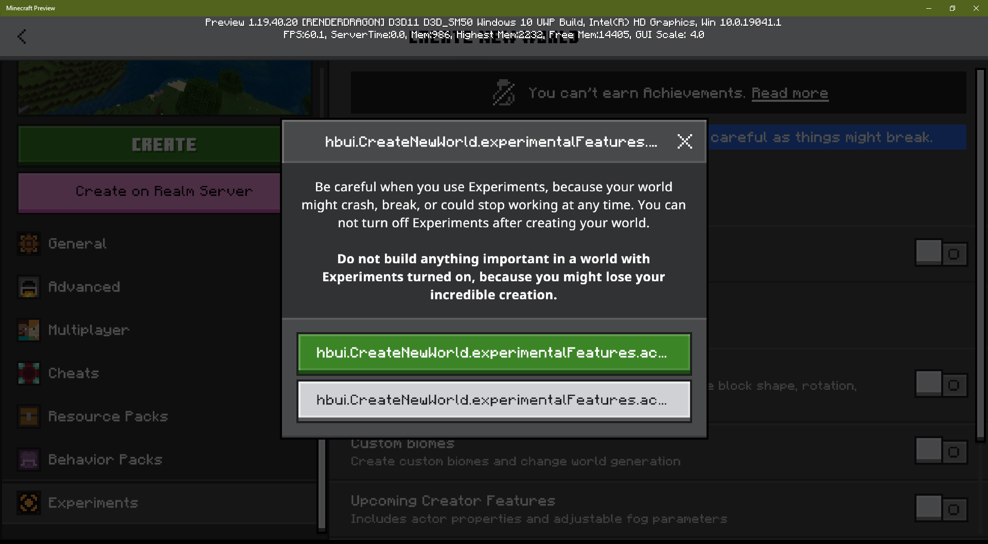 The experimental toggle ui is broken. instead of showing the normal names, it shows some kind of glitched output.