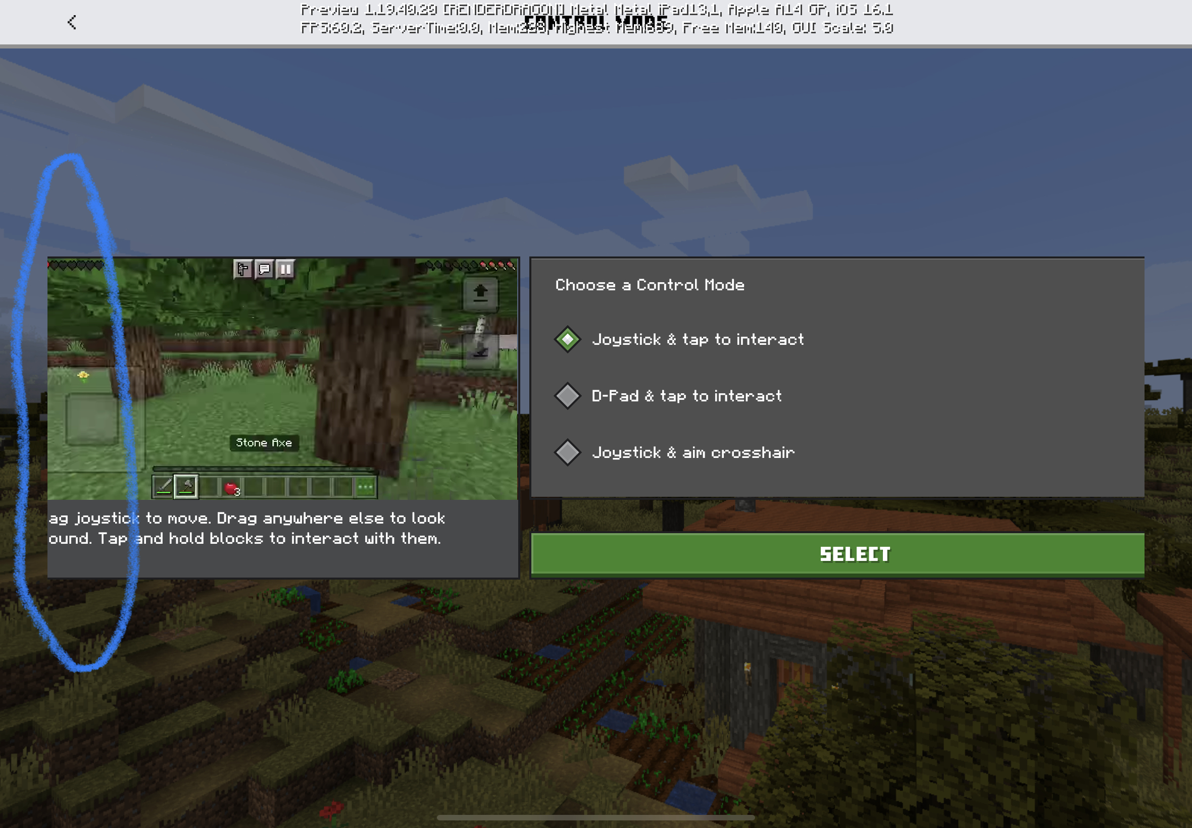 I was checking out the Minecraft Preview 1.19.40.20 and checked the touch control schemes for the new “choose a control mode” and all of a sudden, I see that half of the new ui is cut off. See attachment for reference.
