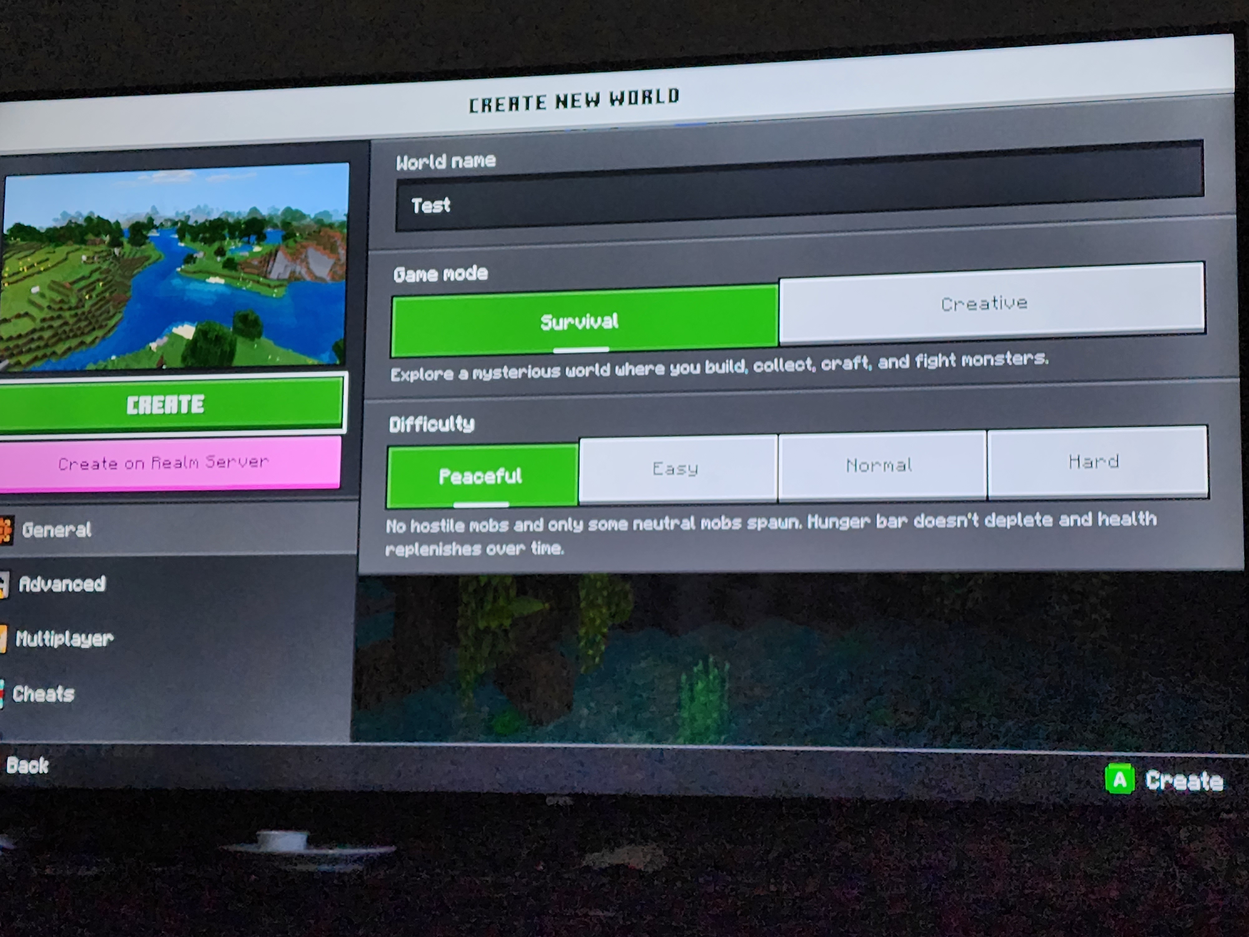When i try to create a world, no matter how it is made or just the default, when i hit "Create", the screen resets to the default "create world" menu.