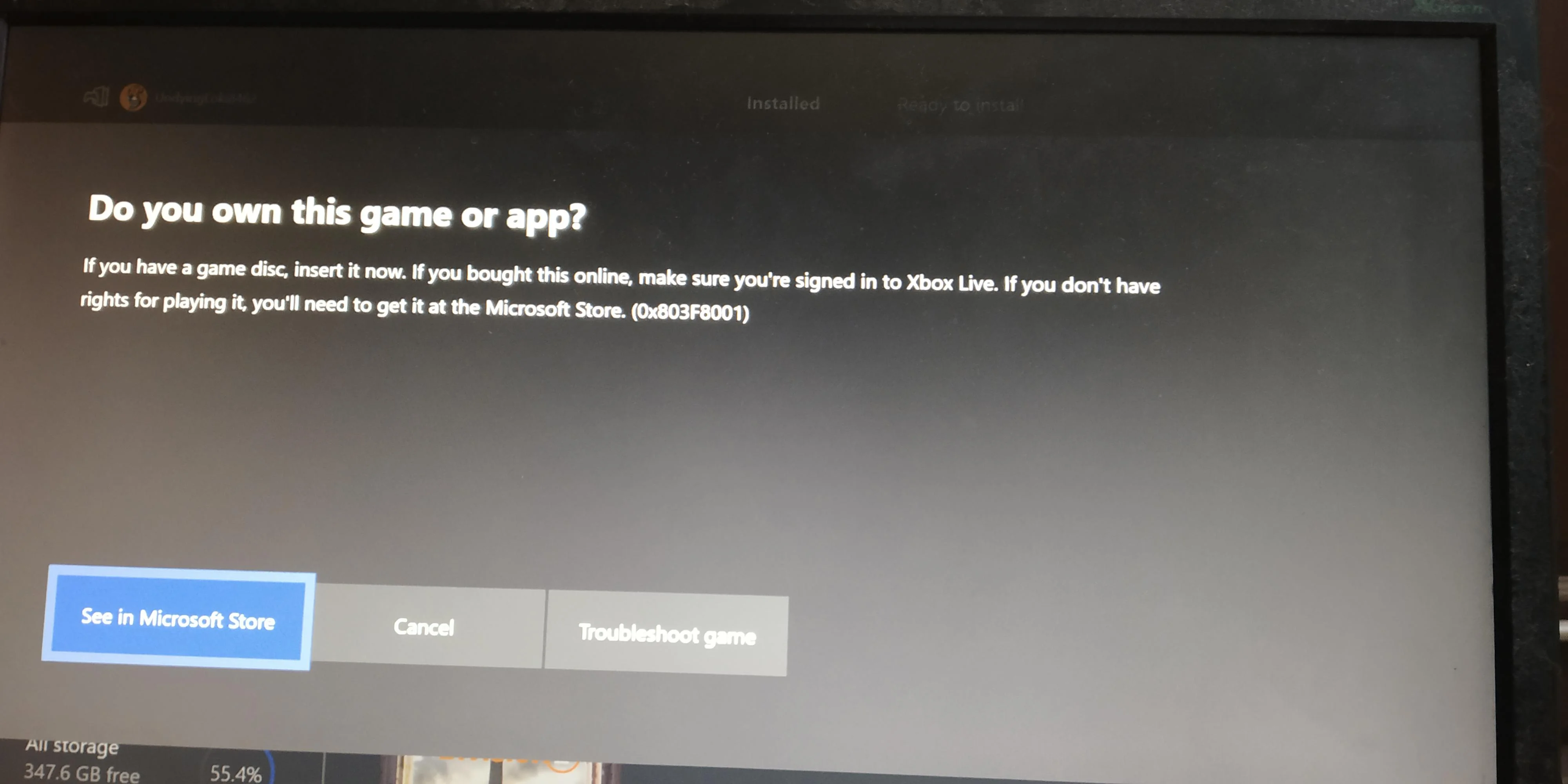 Xbox: Game does not start and says "Do you own this game?