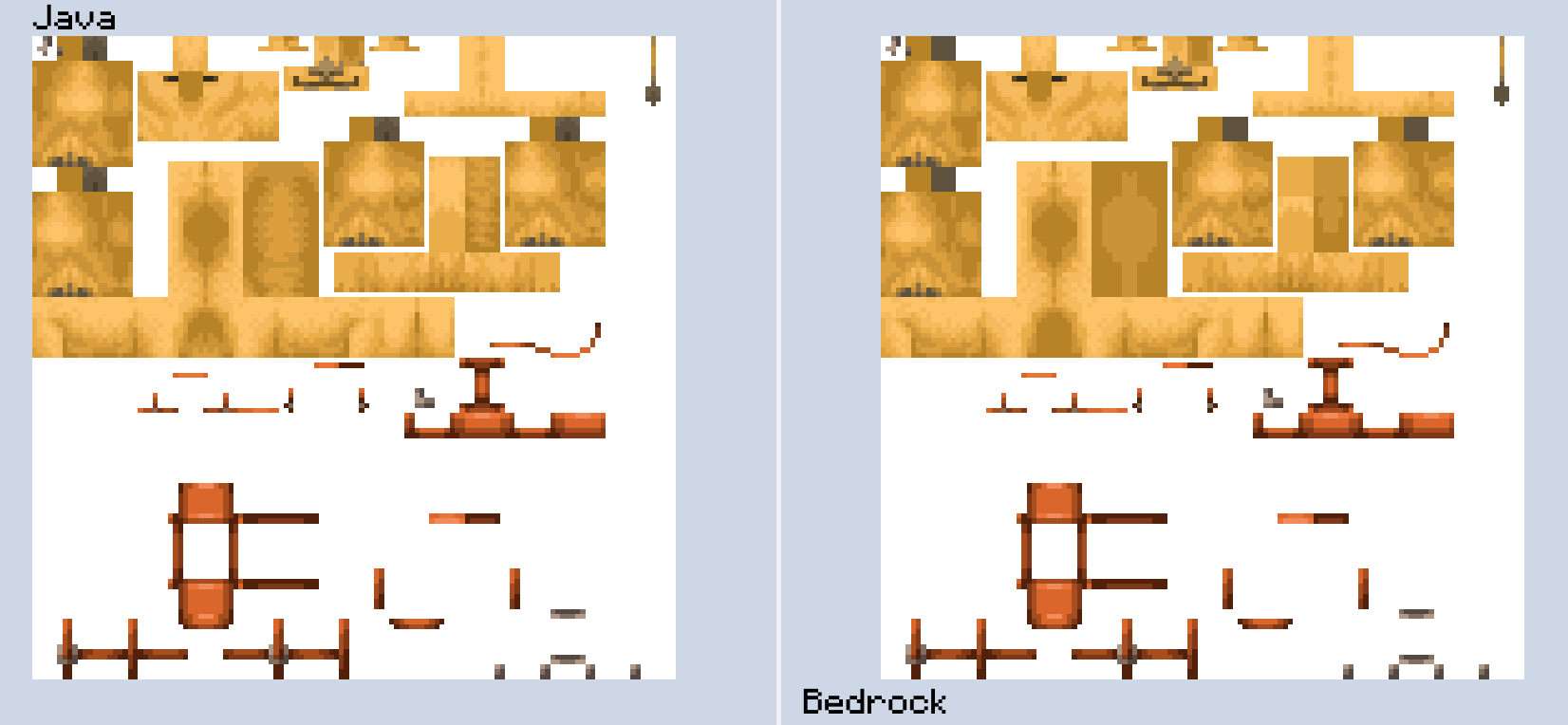 The camel's texture on Bedrock Edition is different from Java, and it looks more incomplete and less detailed than what it should be.