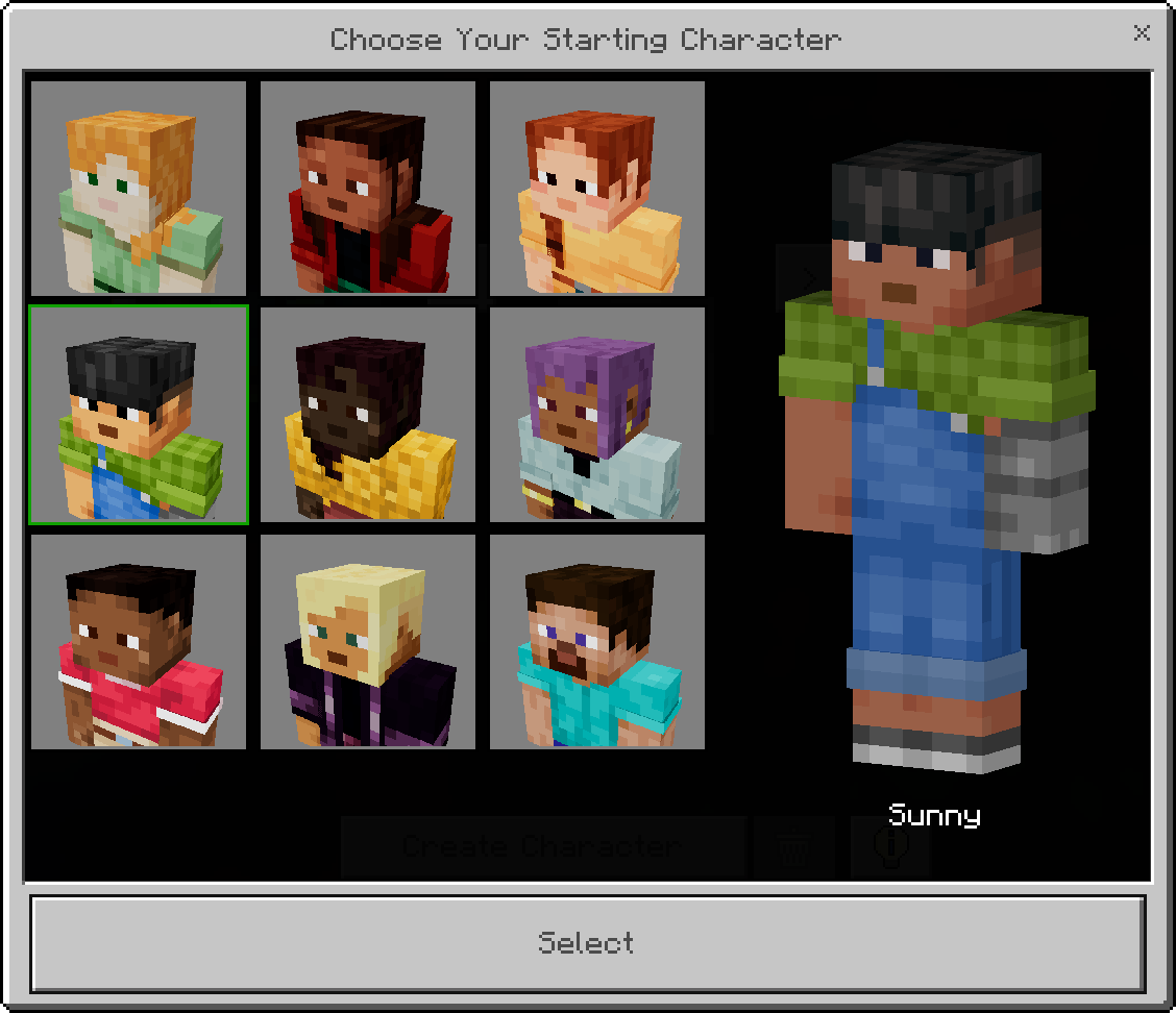 An entire cast of new default characters, and an updated Alex & Steve have been introduced in this beta. However, they're made with the character creator, even though they were all based on skins. This causes a bunch of visual issues and mismatches, some more severe than others.