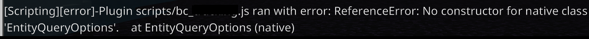 An error is shown that there is, "No constructor for native class 'EntityQueryOptions'"