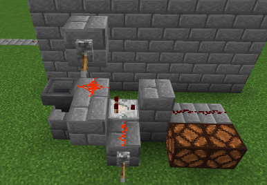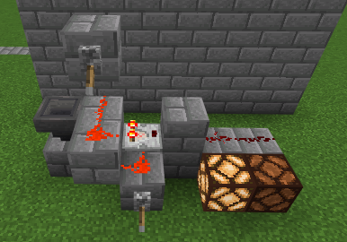 This also has some strange effects when it comes to comparators reading a signal from a container. Usually, the container overrides the value from any redstone lines, and that still happens. But when a redstone line is connected to both inputs of the comparator, and the comparator is reading from an container, bug is present (see images). Hopper has 1 dirt in it.