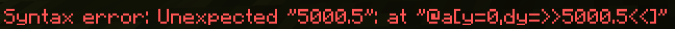 Syntax error: Unexpected "5000.5": at "@a[y=0,dy=>>5000.5<<]"