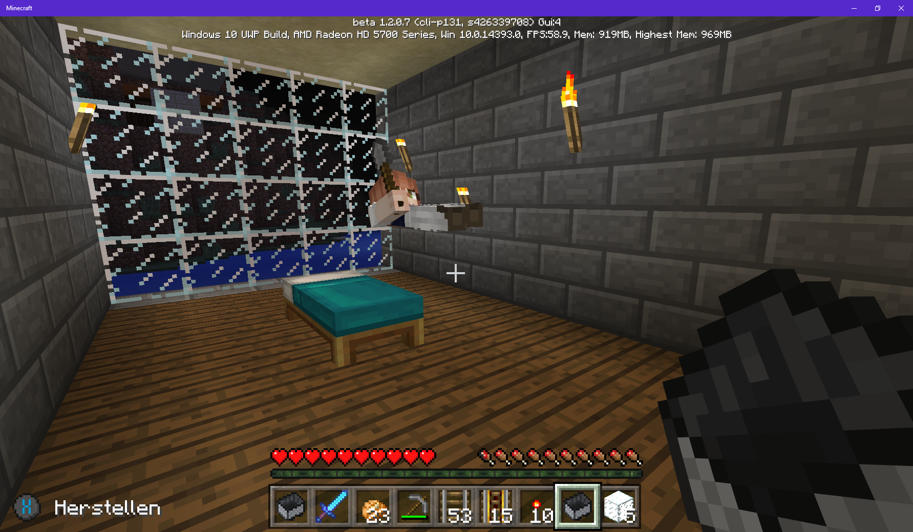 The player floats above the bed at random angles, while the player is in the bed. However, this does not change the actual view of the player, from his perspective.