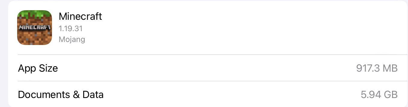 I sent some screenshots about the bug. According to my facts, Minecraft should not take up more than 3.5-4GB of storage, Minecraft storage settings does not include some system files and some extra data like skin packs, while iOS storage settings says that Minecraft takes up 6.85GB of storage(which is incorrect).