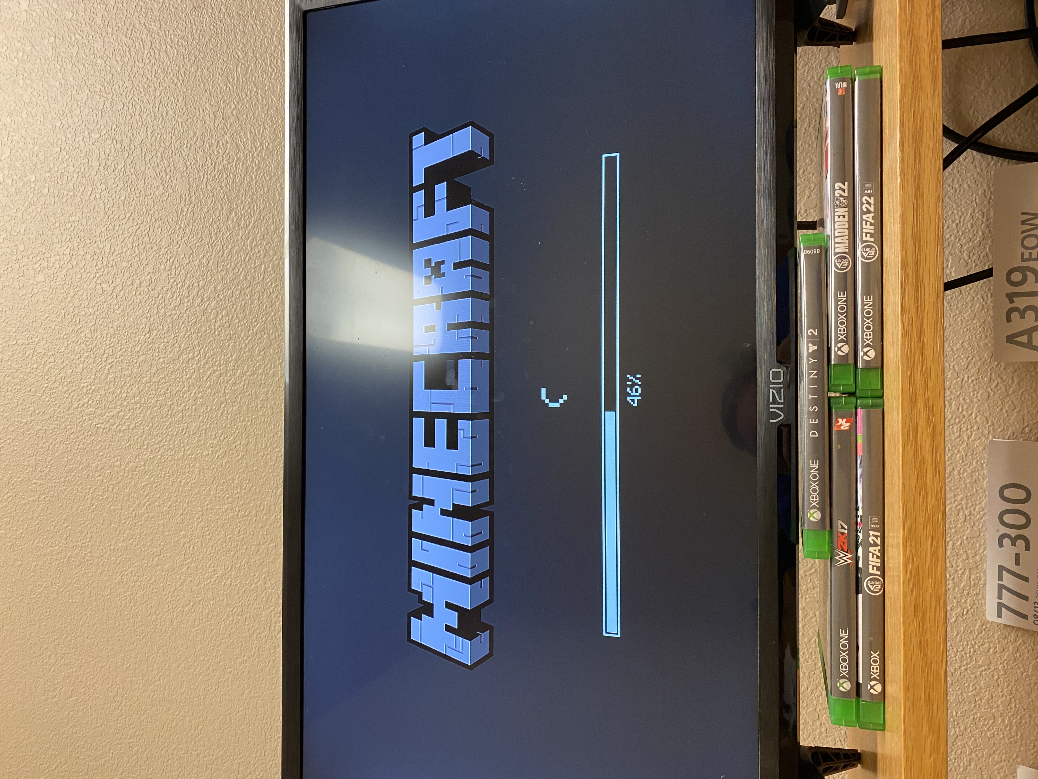 So when I go in to launch Minecraft, the Mojang logo appears and then it takes me to the pre-game loading screen of which it only loads up to 46%. I have restarted my xbox twice now and it has still been stuck on this screen in excess of an hour now. Not sure what to do at this point. Any help would be greatly appreciated. I have provided an attachment showing the loading screen as well.